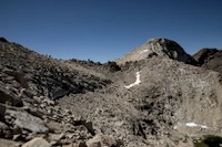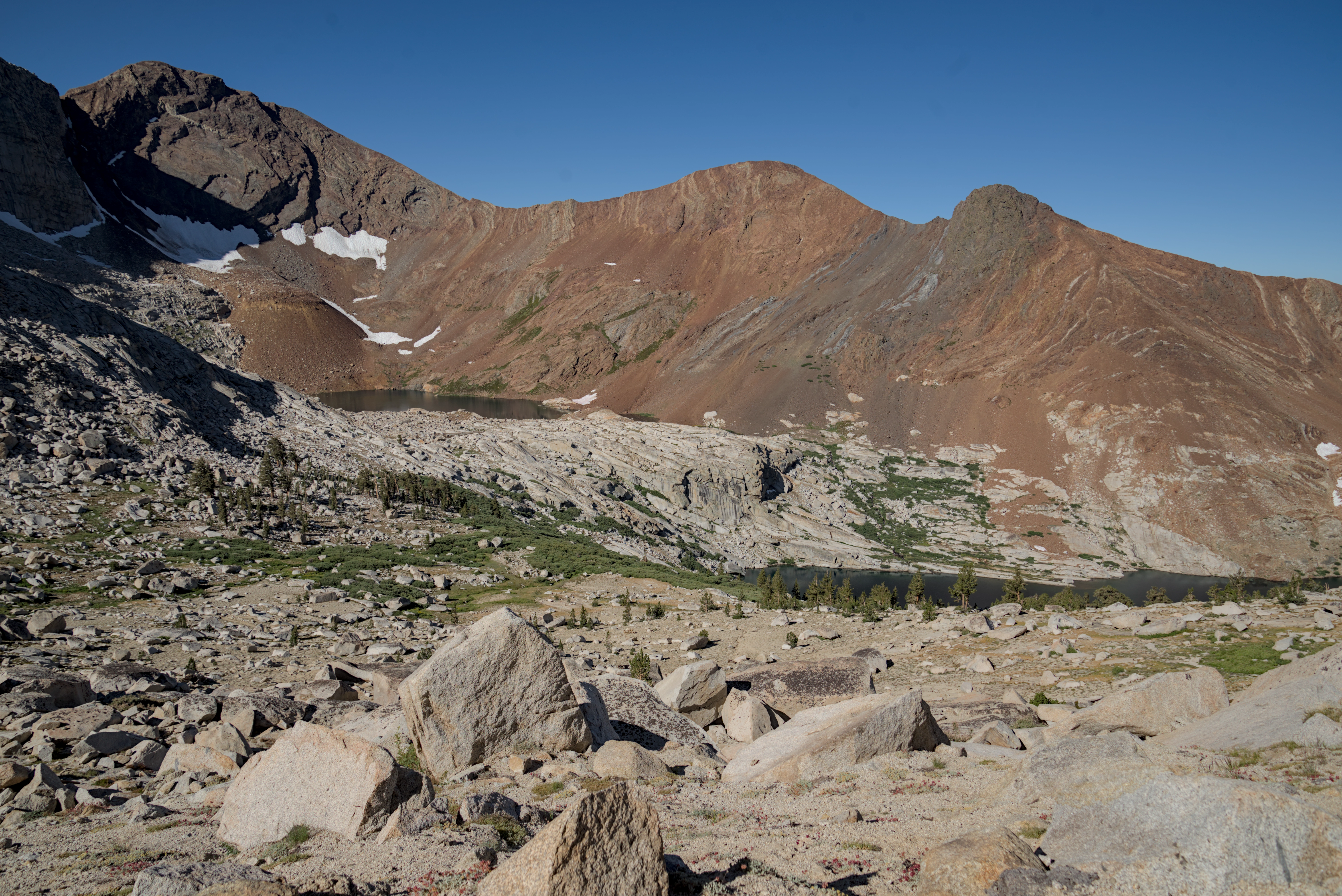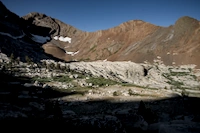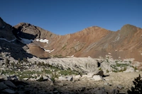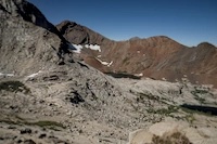 Looking back at the ridgeline from just over Franklin Pass. The trail runs along the back side of this ridge to the snow bank where we at our lunch.