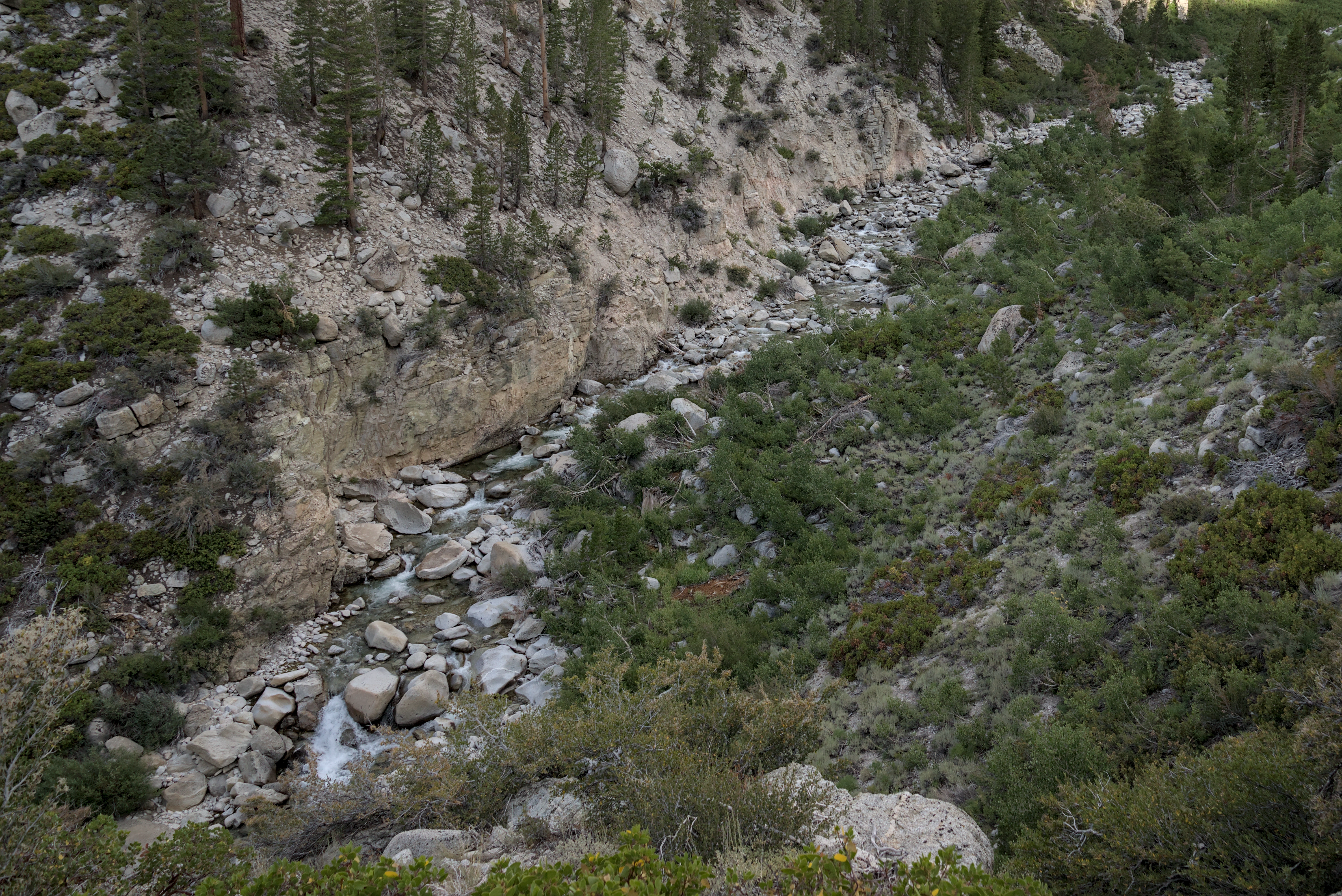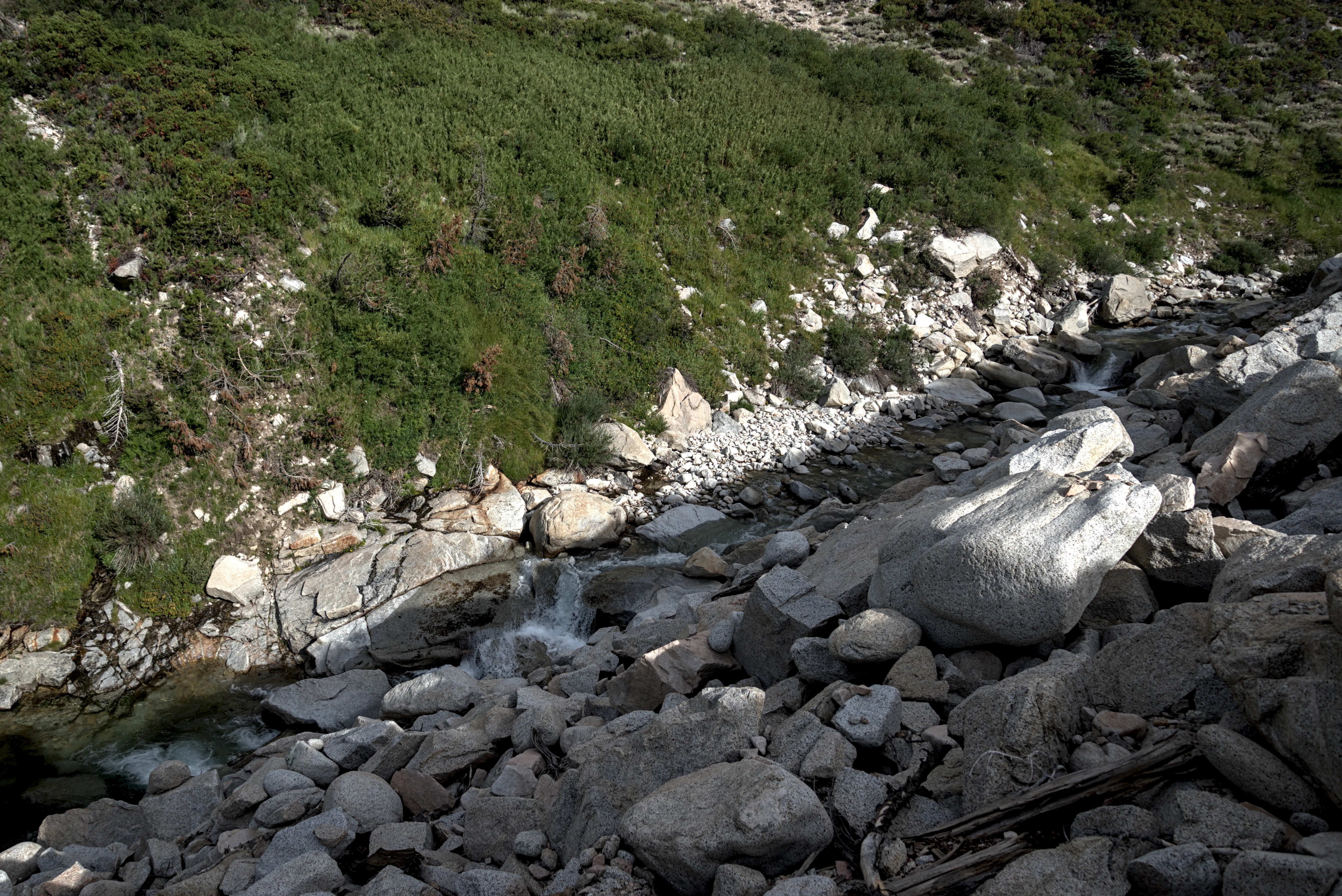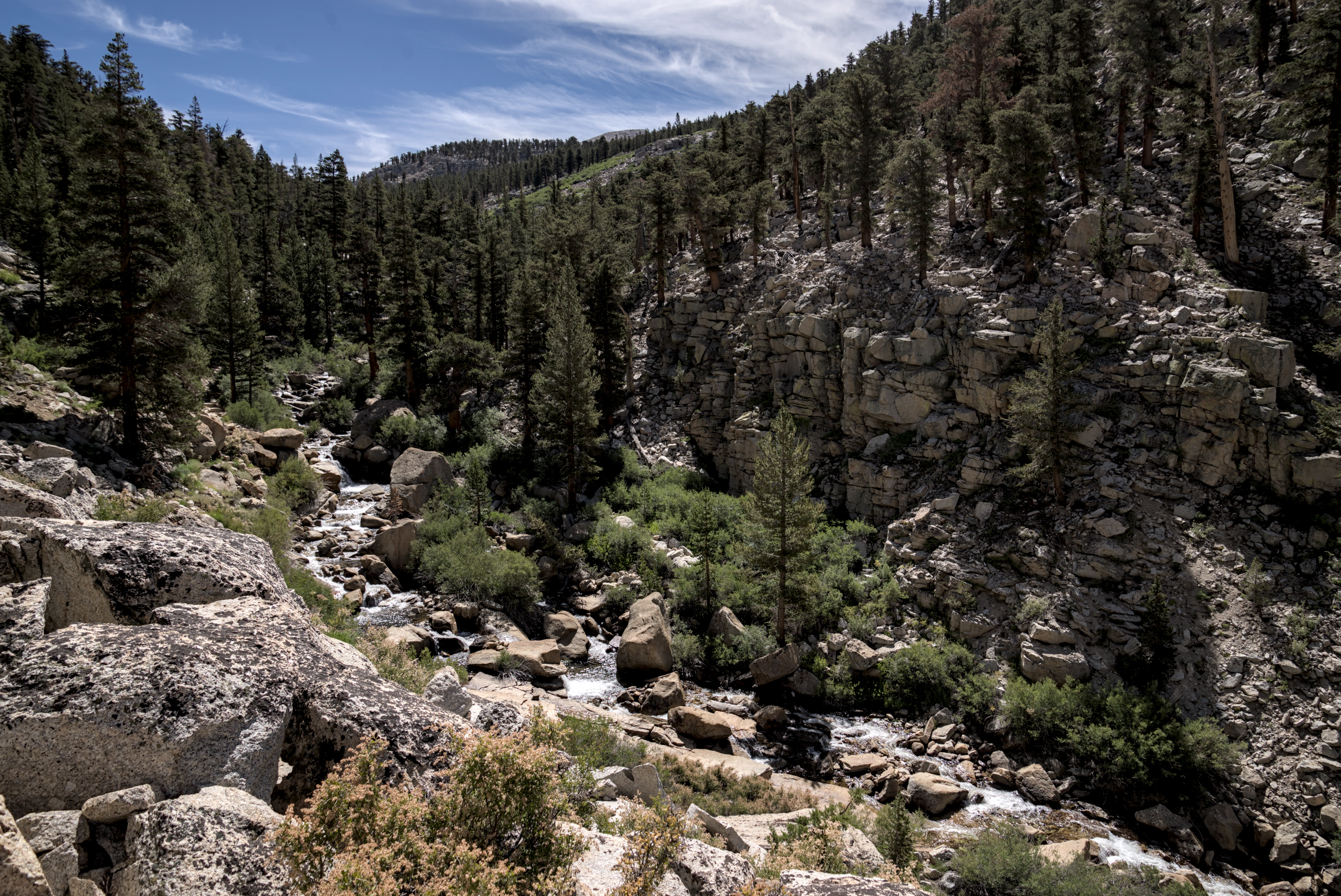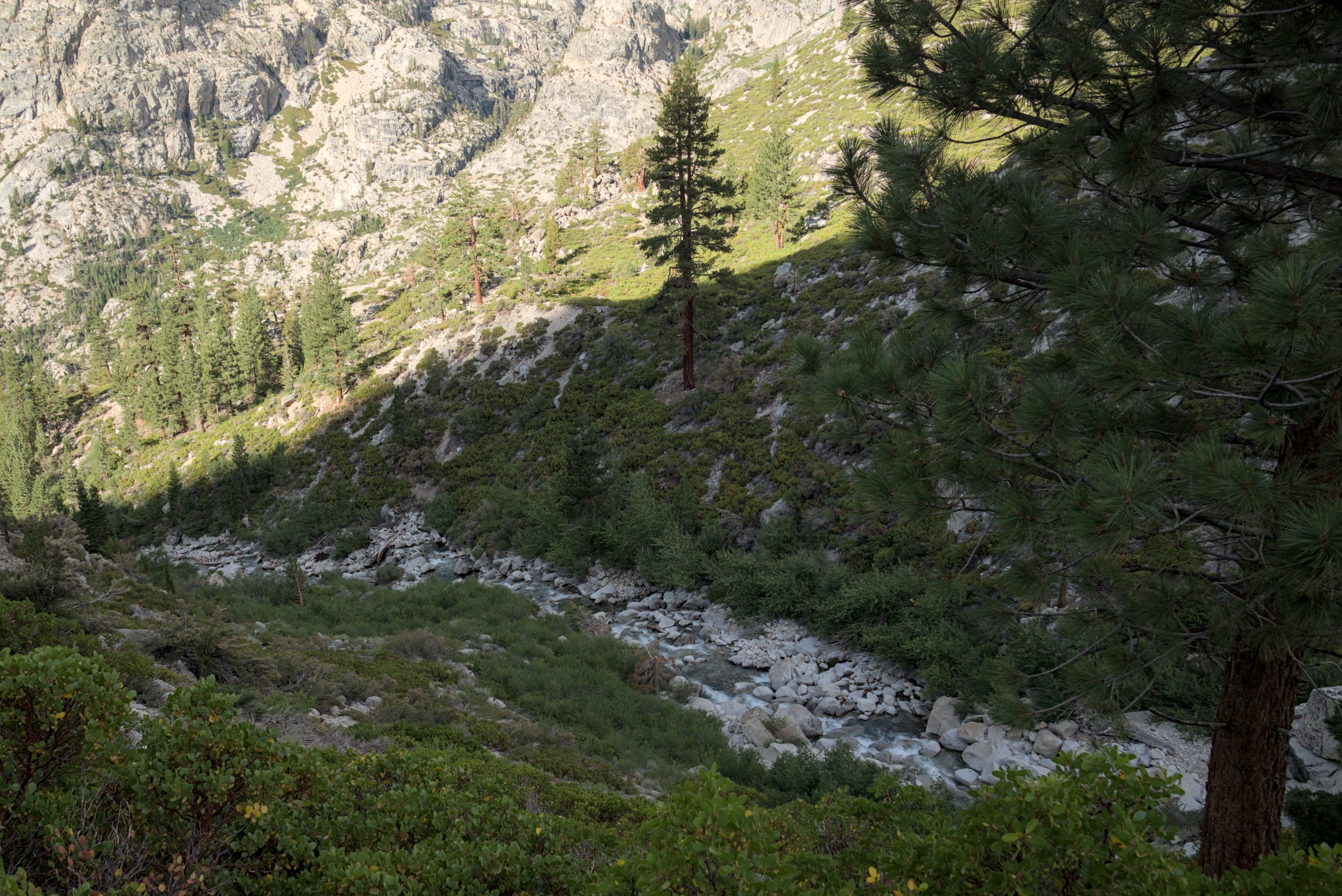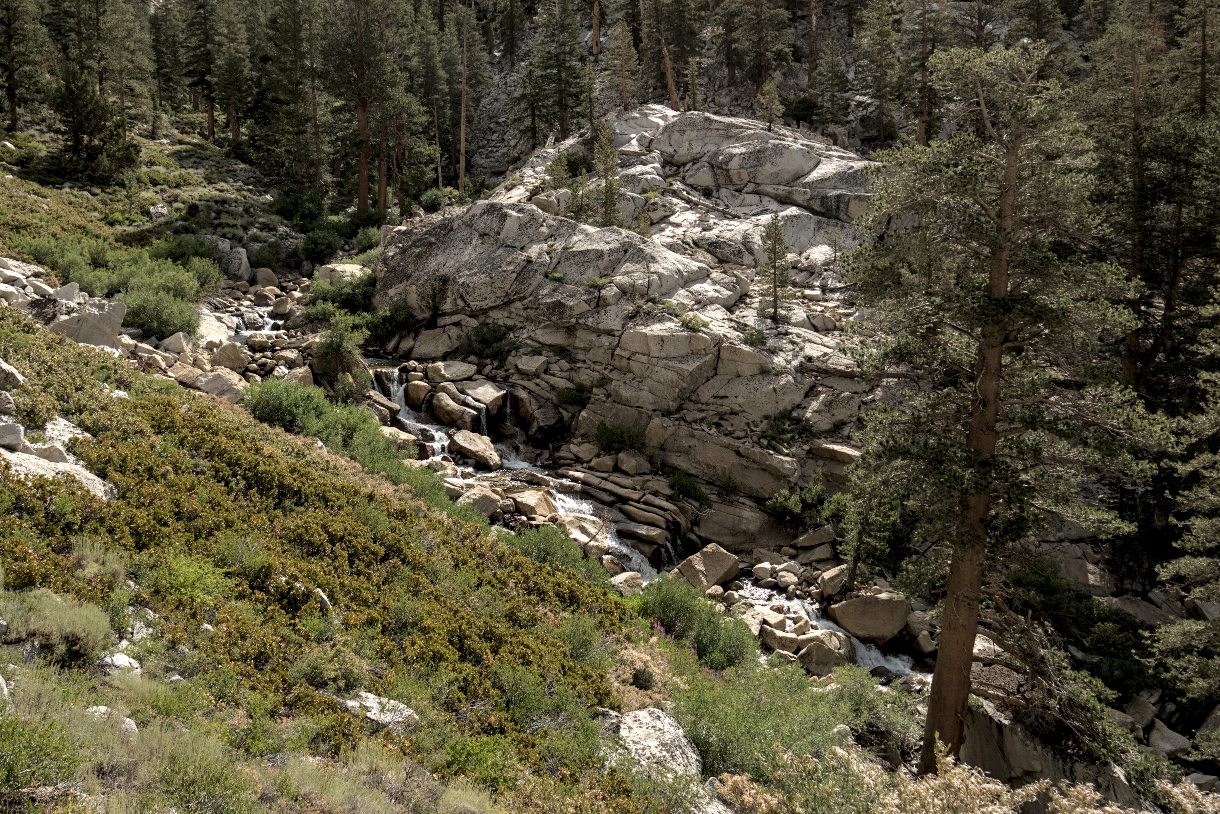 Past where Kern-Kaweah forks off, the valley's starts climbing much more steeply, making the Kern sound like something that needed its photo taken. Unfortunately, post-processing these photos is where I learned that I don't have the coordination to shoot 1/250' exposure without more stabilization assistance than a monopod, so the photos I ended up with are annoyingly blurry.