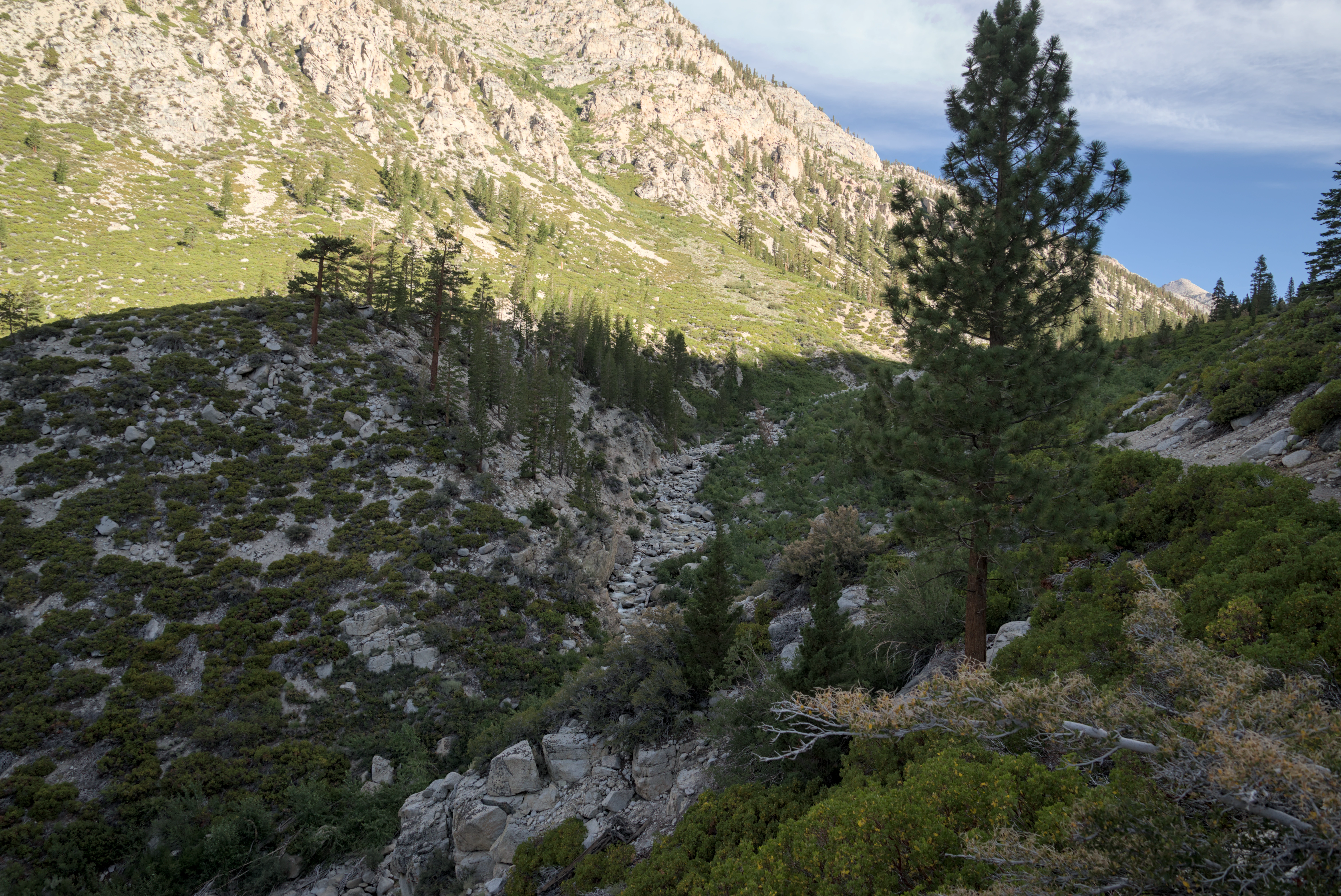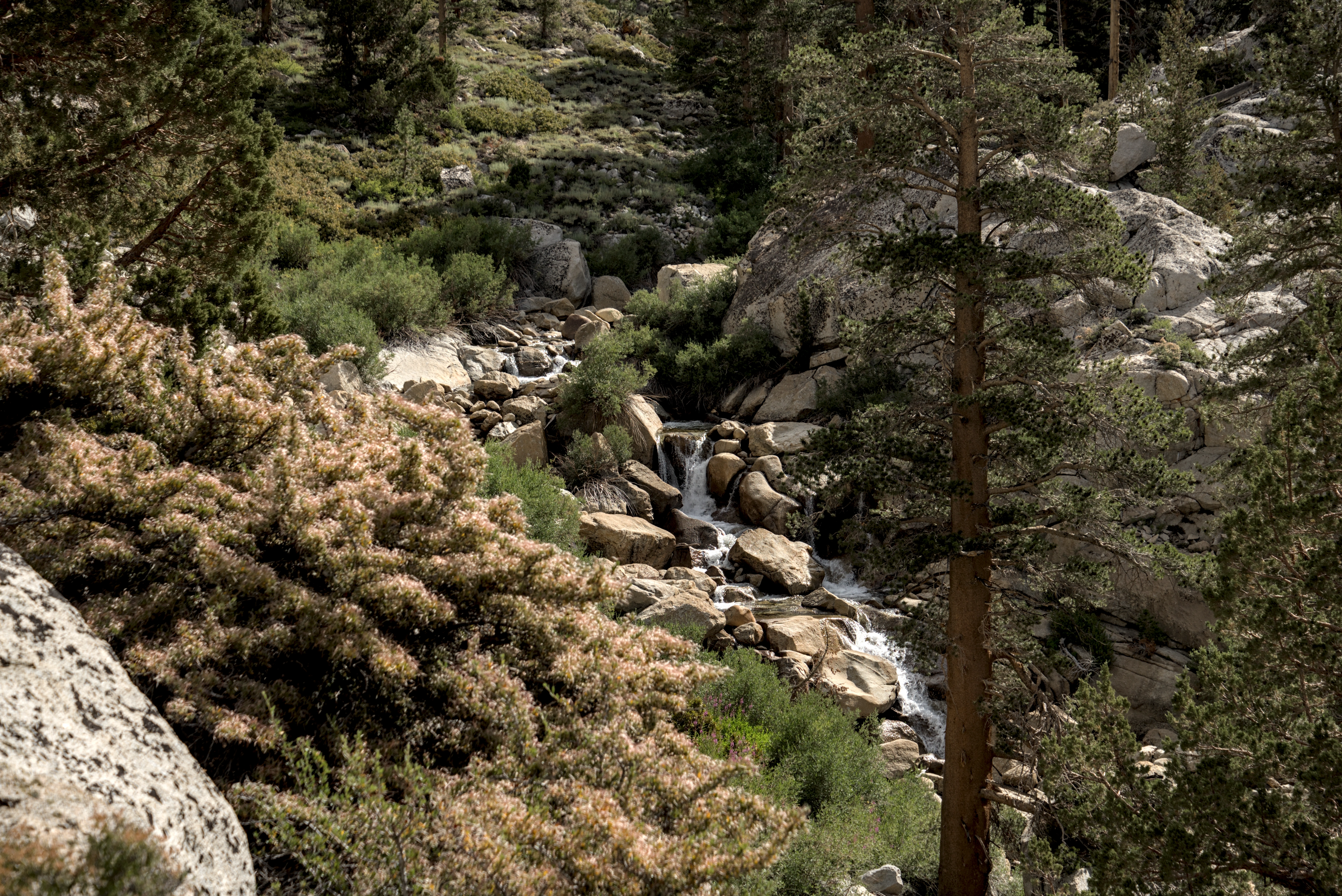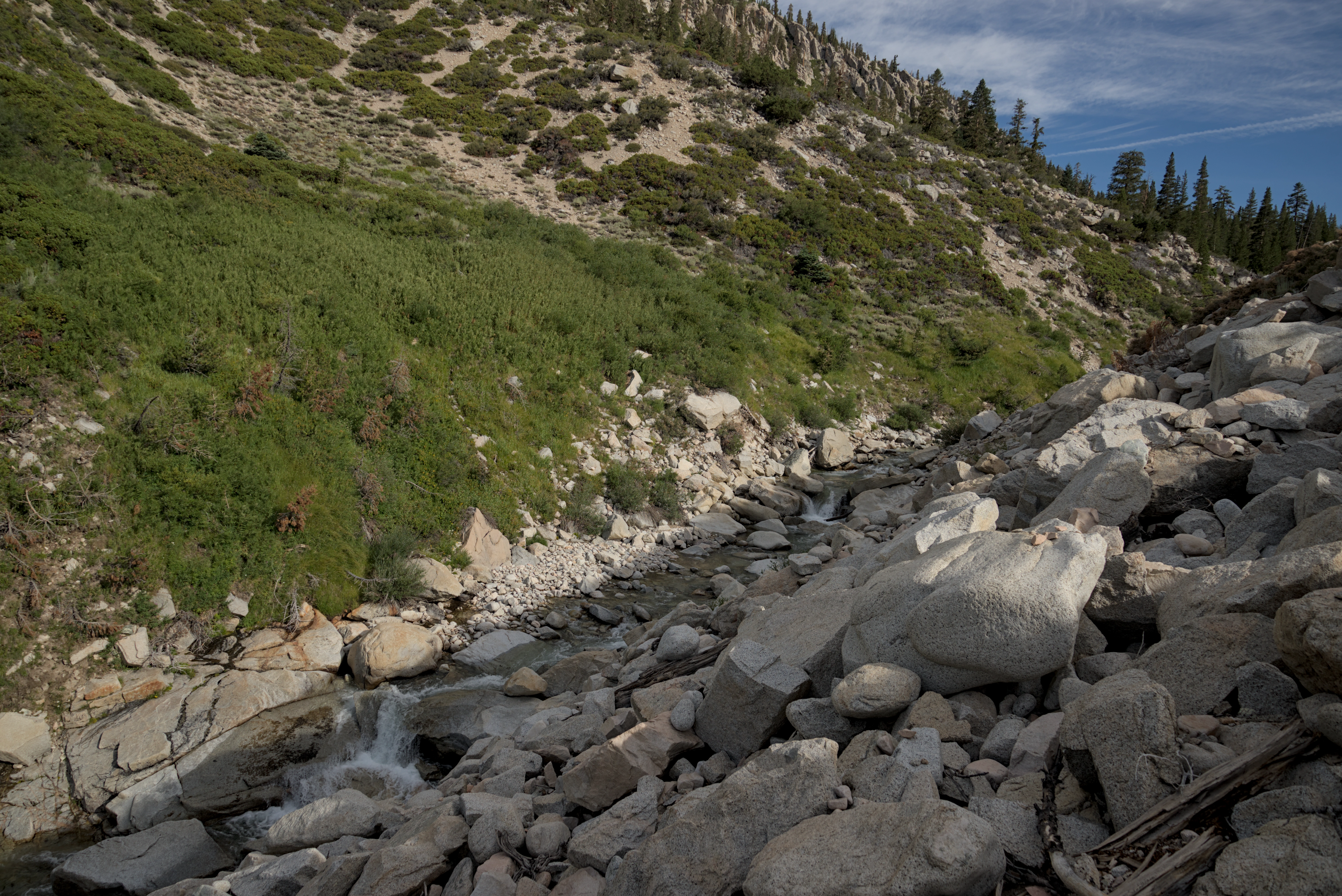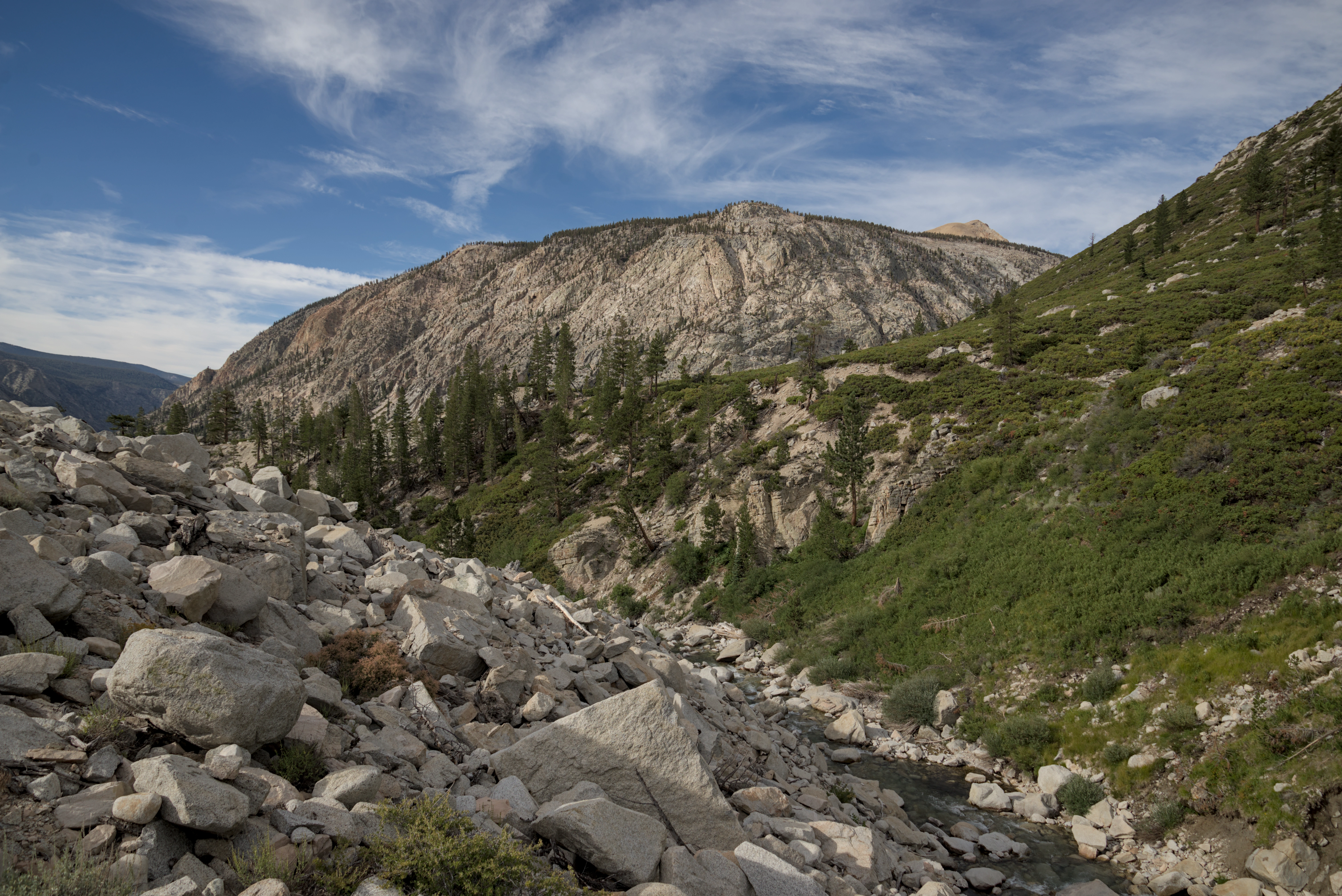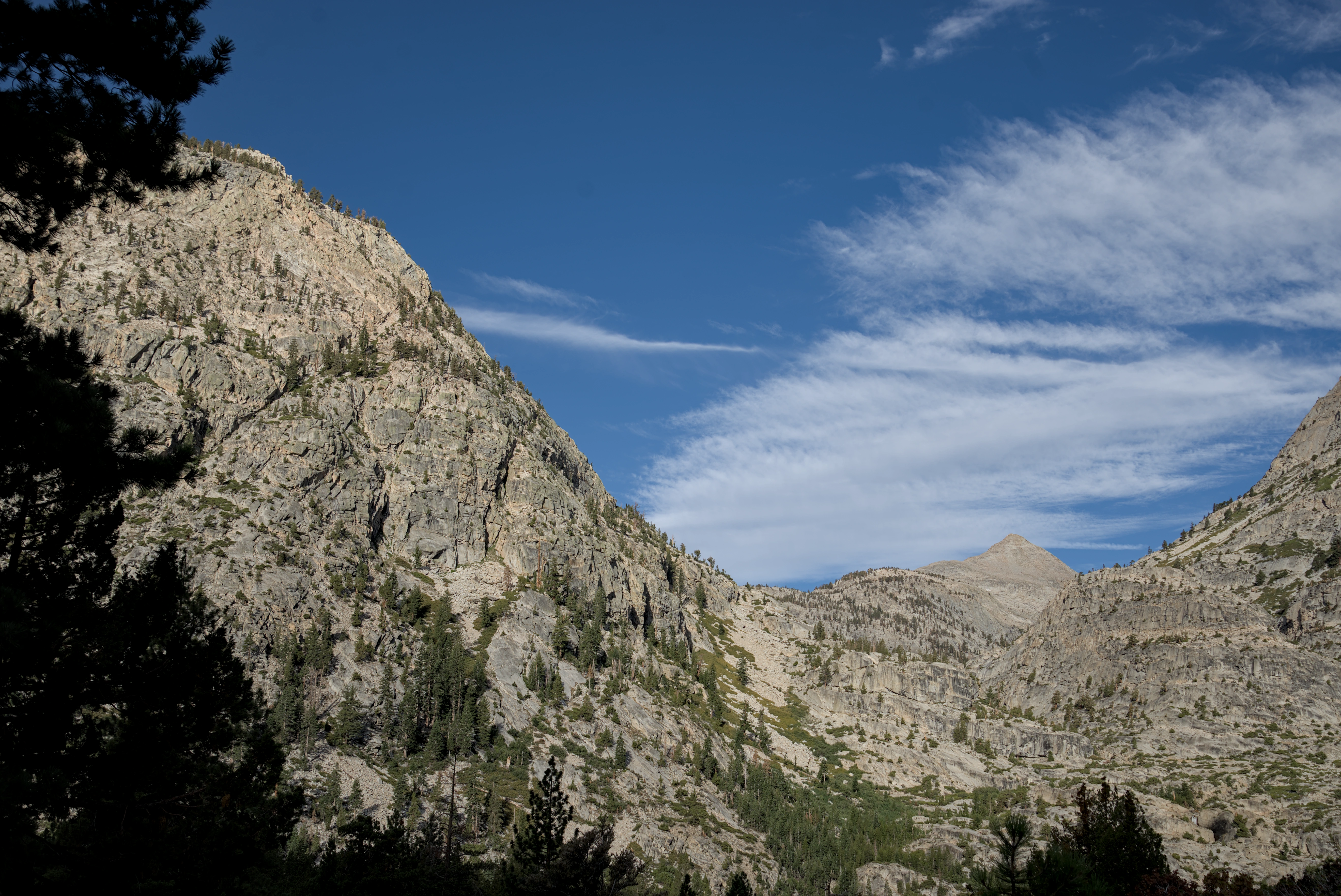 Past where Kern-Kaweah forks off, the valley's starts climbing much more steeply, making the Kern sound like something that needed its photo taken. Unfortunately, post-processing these photos is where I learned that I don't have the coordination to shoot 1/250' exposure without more stabilization assistance than a monopod, so the photos I ended up with are annoyingly blurry.