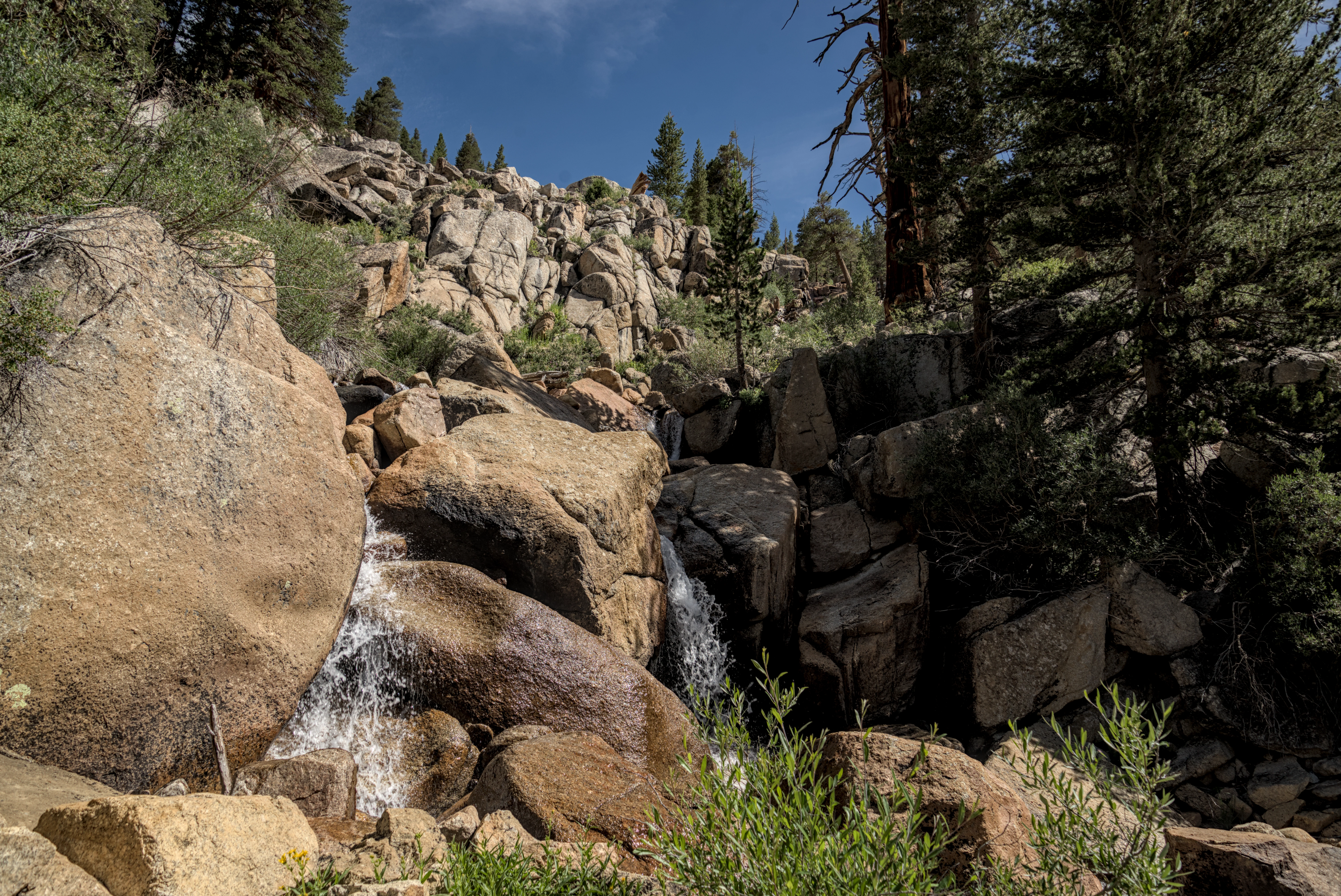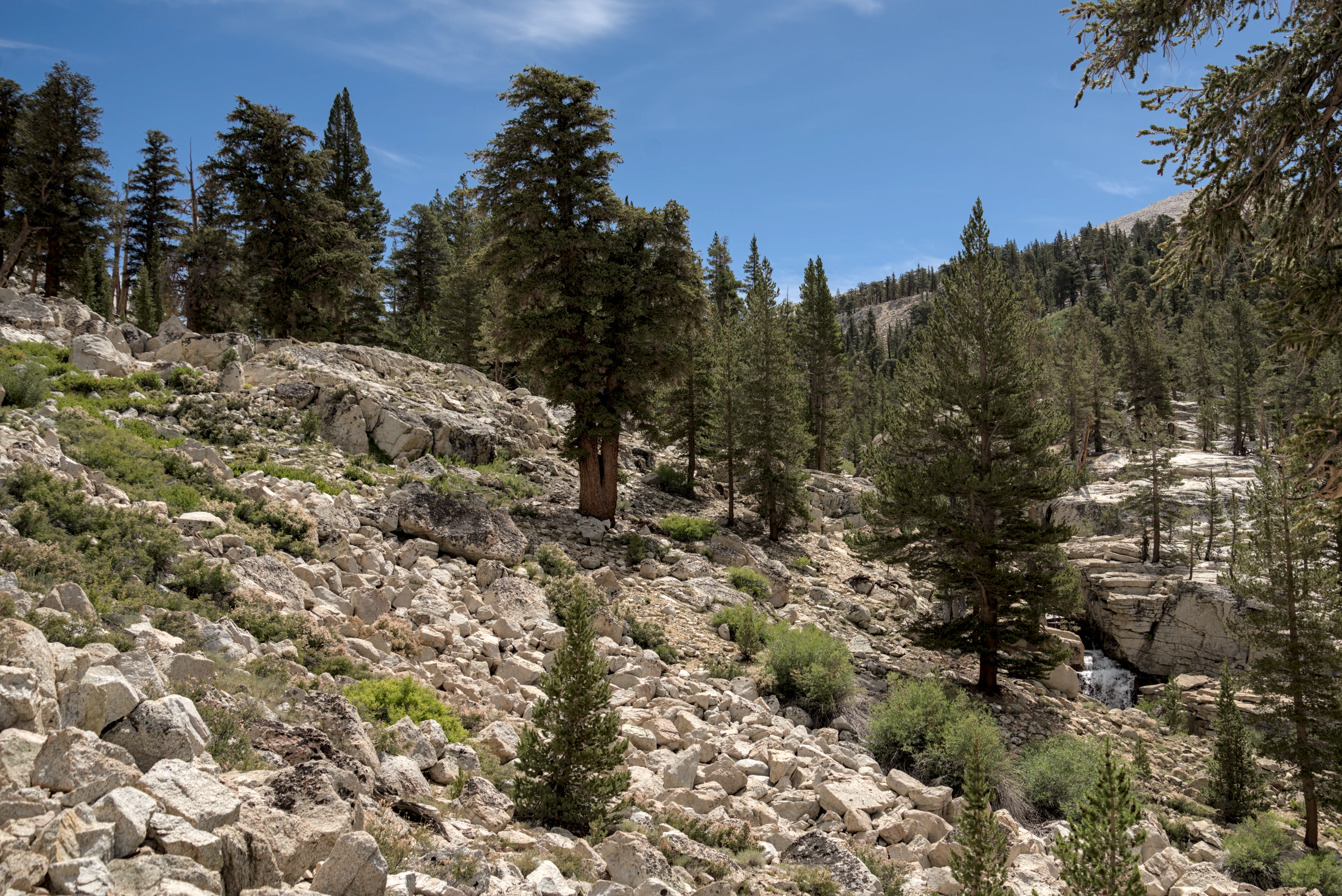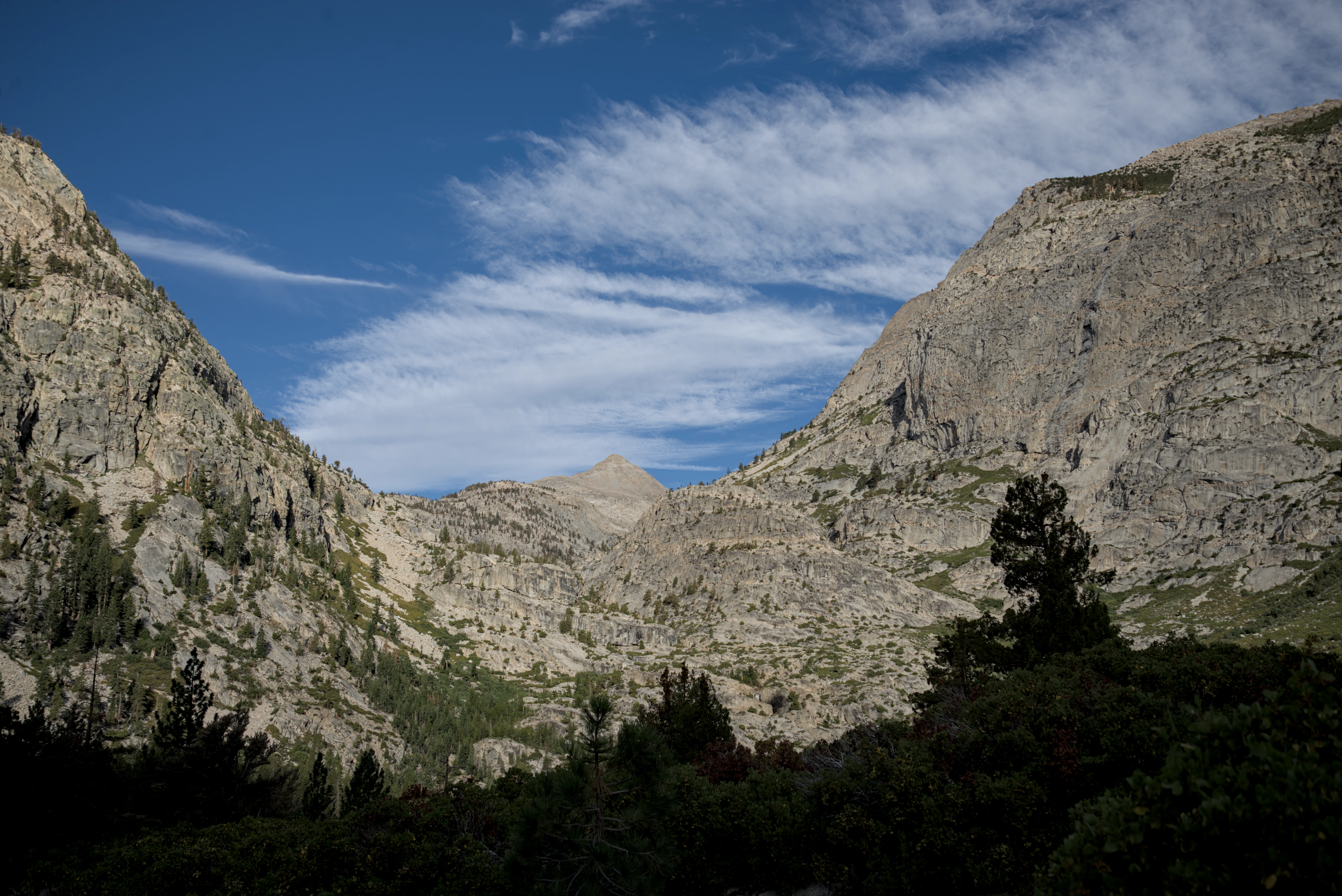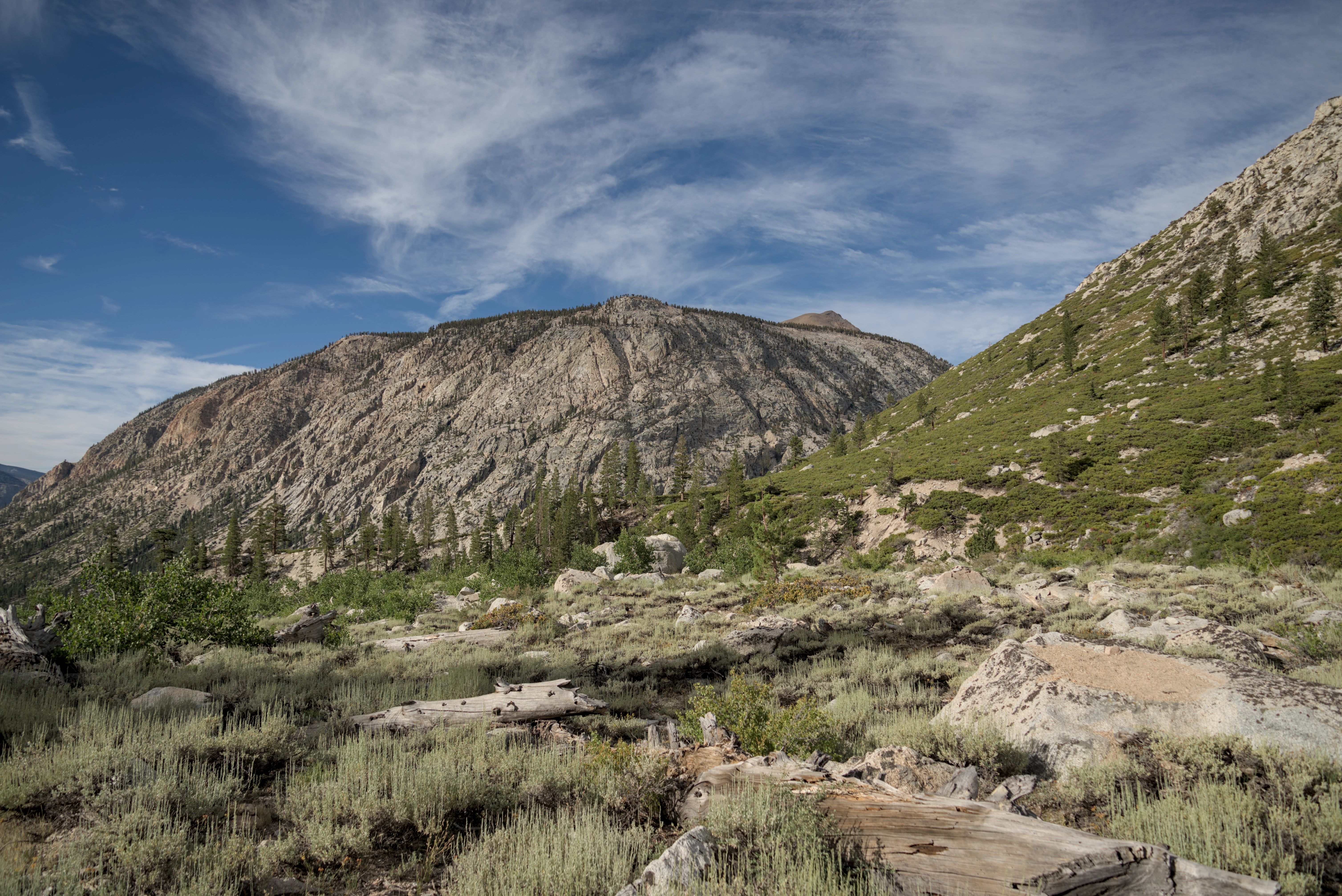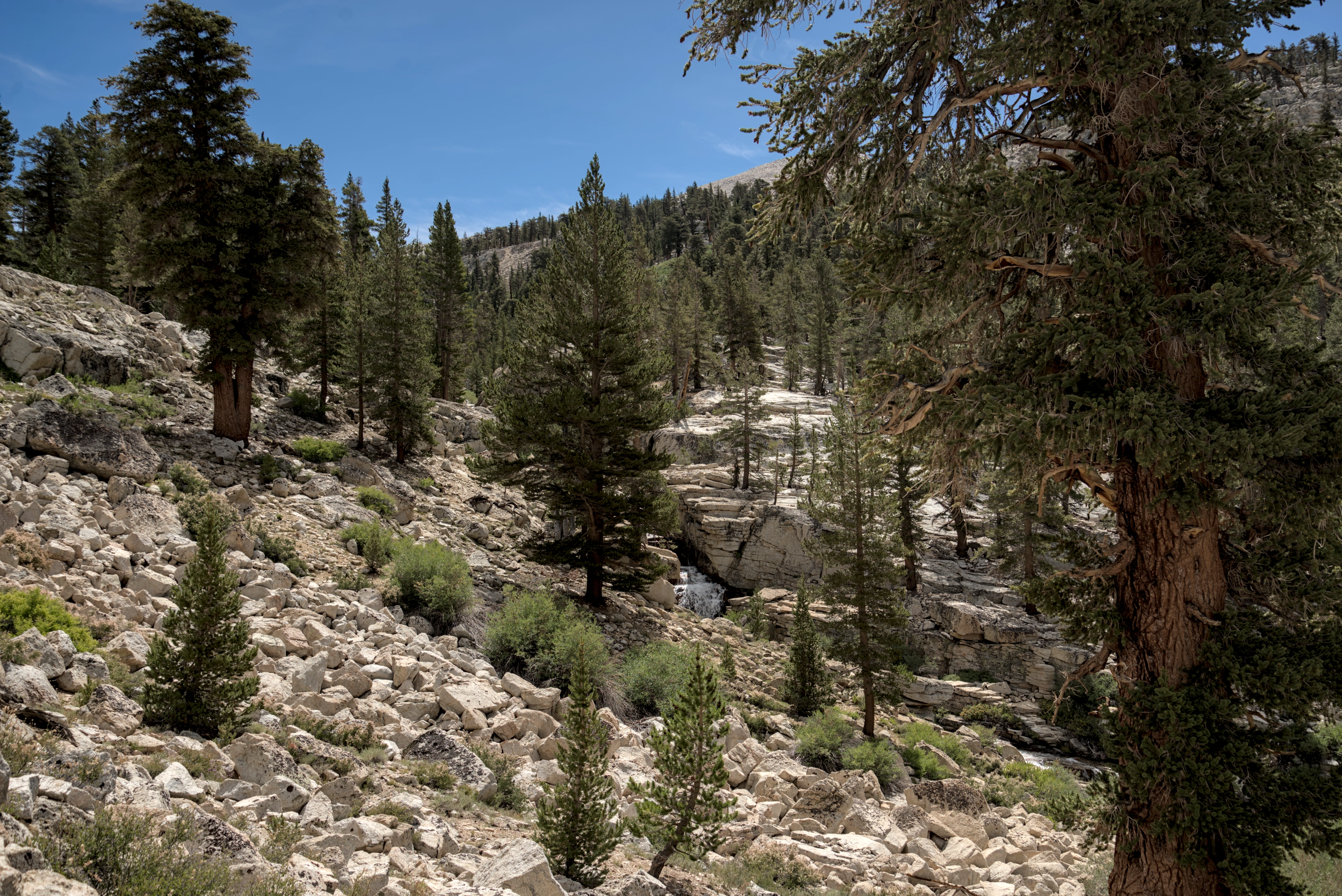 Past where Kern-Kaweah forks off, the valley's starts climbing much more steeply, making the Kern sound like something that needed its photo taken. Unfortunately, post-processing these photos is where I learned that I don't have the coordination to shoot 1/250' exposure without more stabilization assistance than a monopod, so the photos I ended up with are annoyingly blurry.