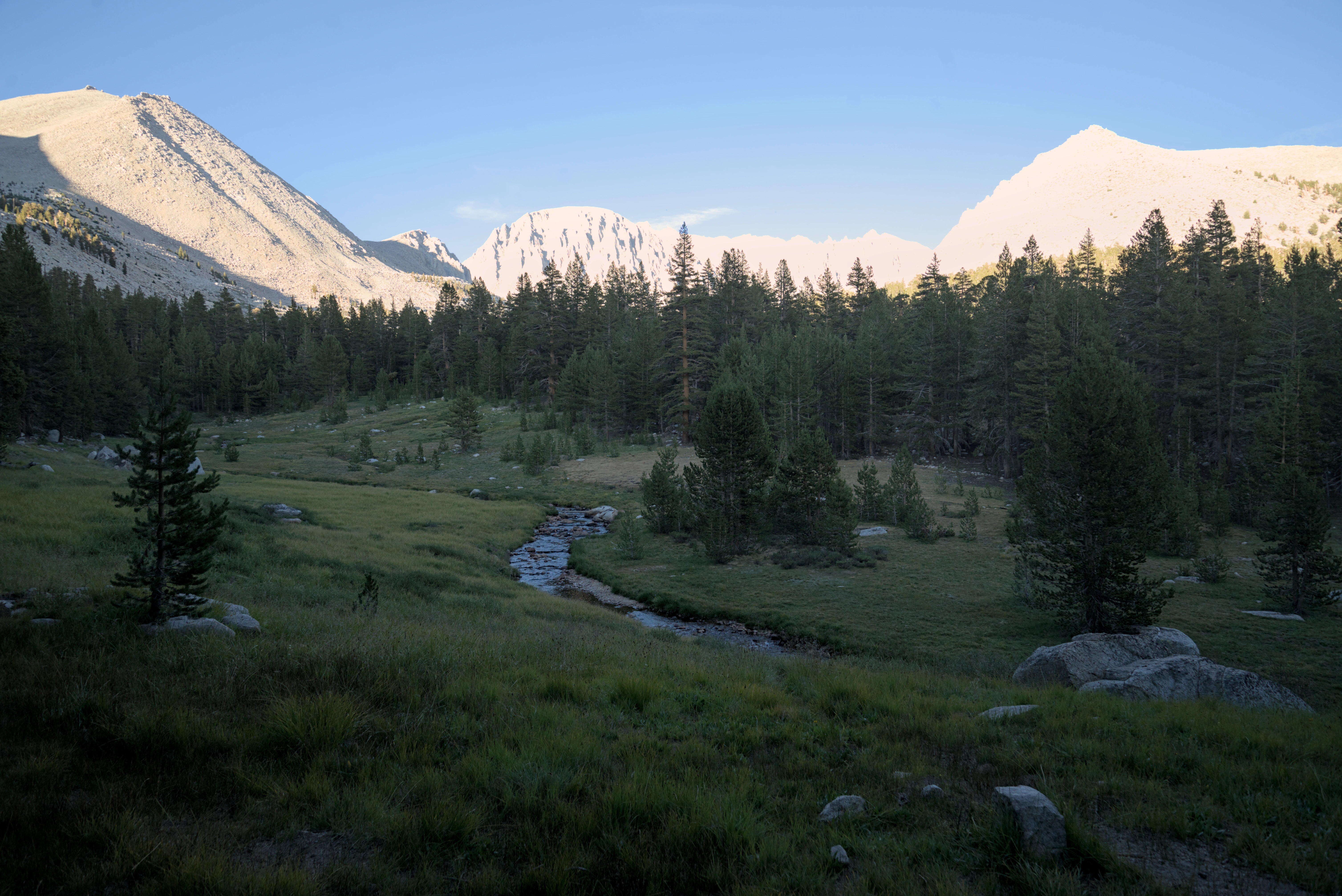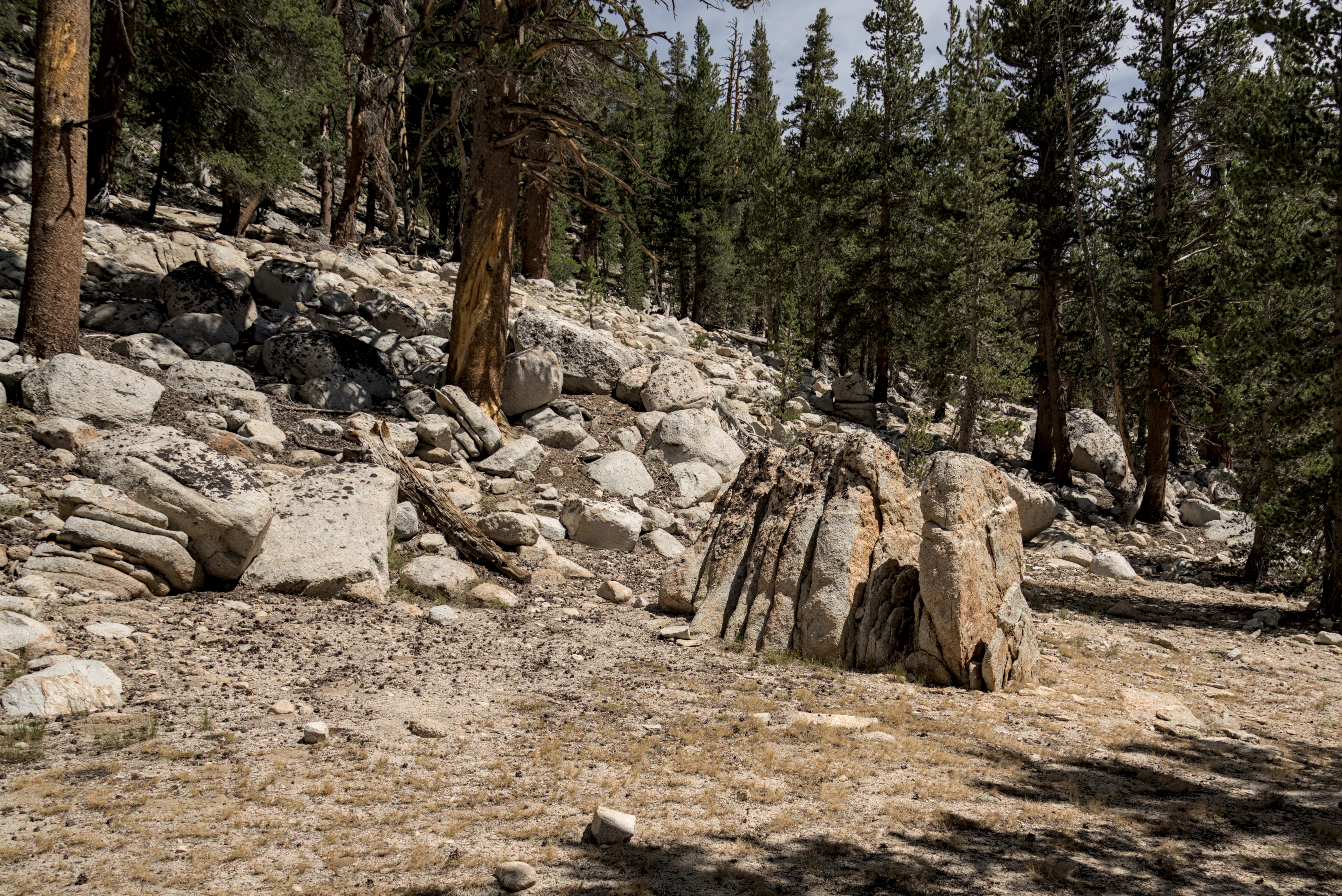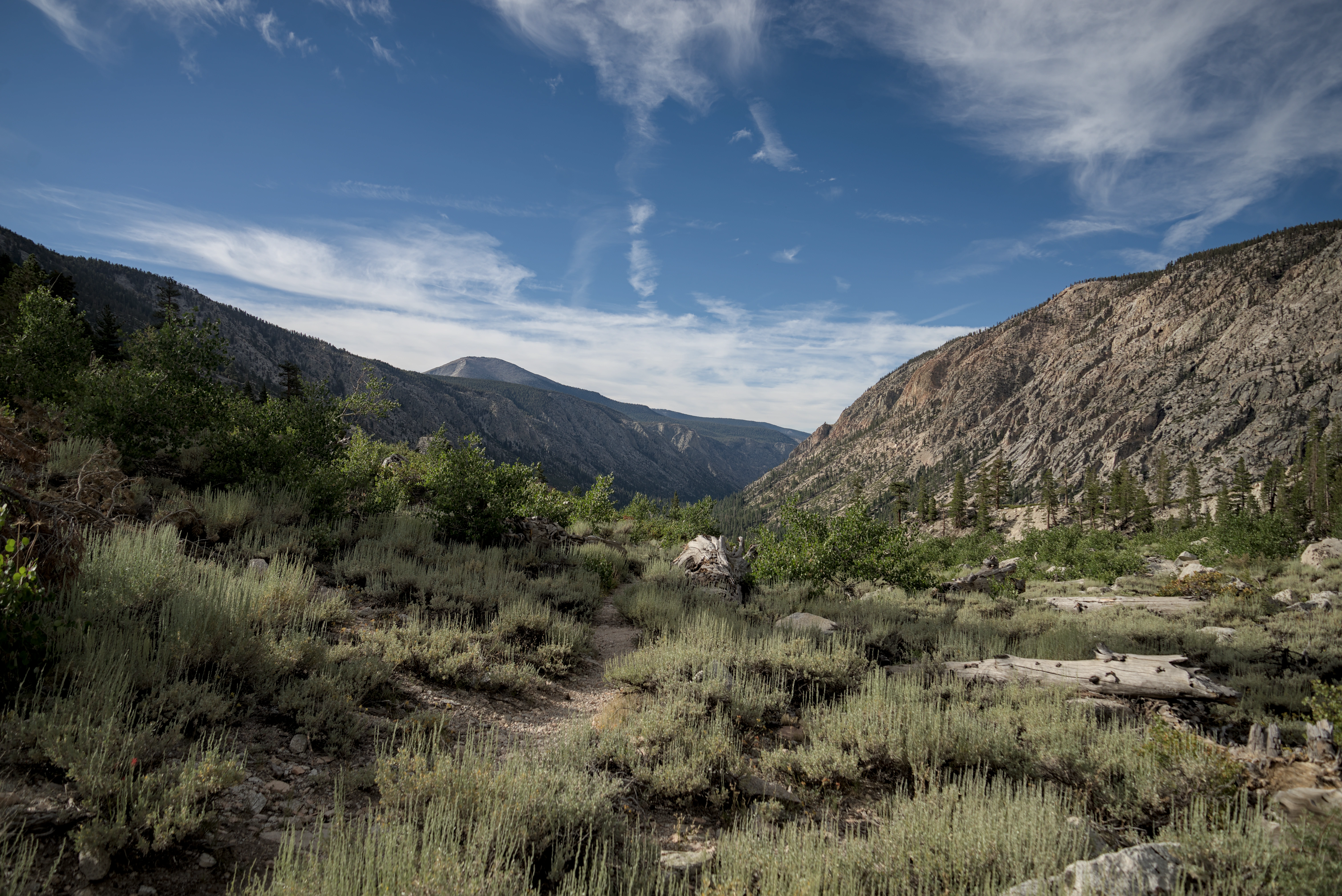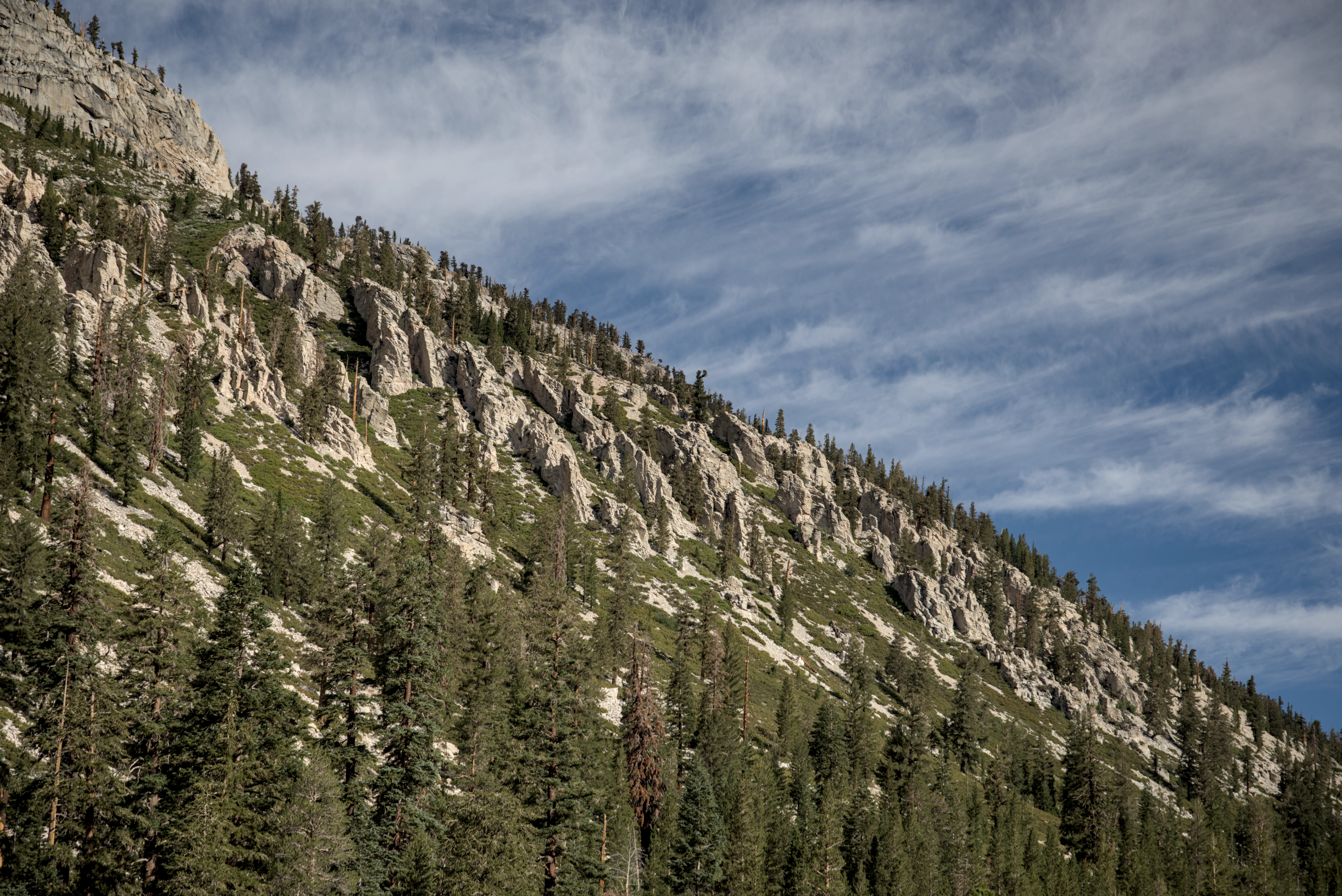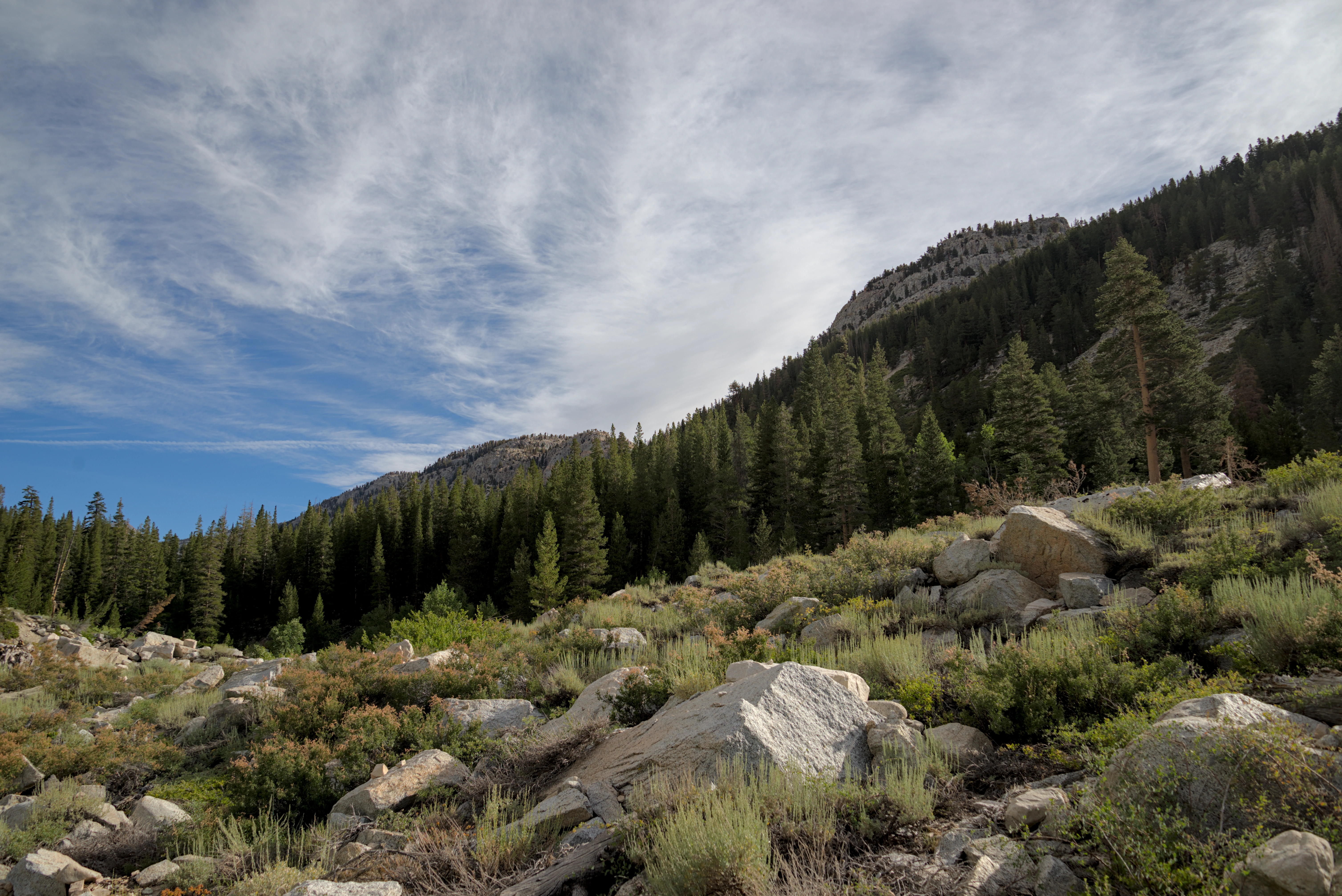 Past where Kern-Kaweah forks off, the valley's starts climbing much more steeply, making the Kern sound like something that needed its photo taken. Unfortunately, post-processing these photos is where I learned that I don't have the coordination to shoot 1/250' exposure without more stabilization assistance than a monopod, so the photos I ended up with are annoyingly blurry.