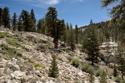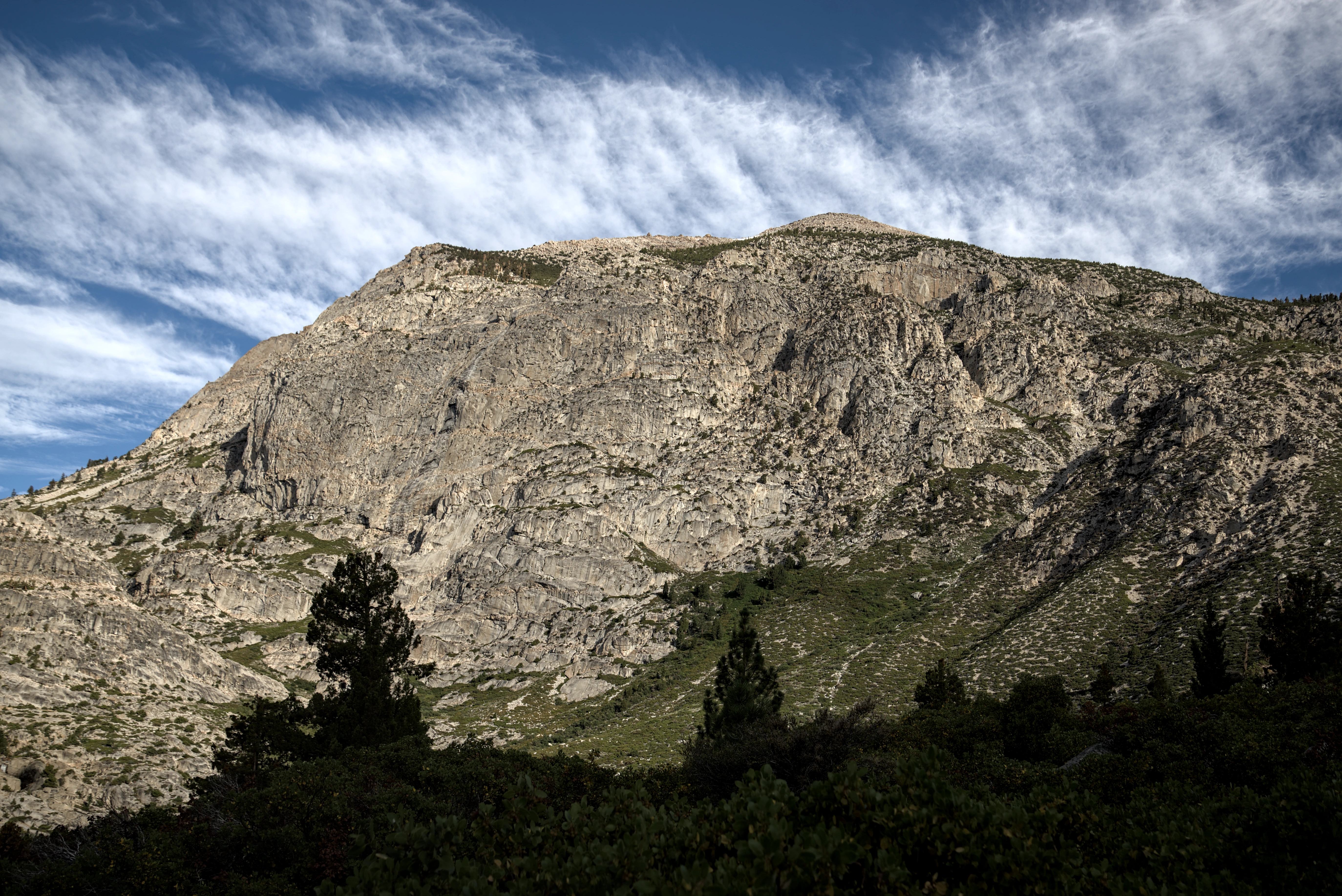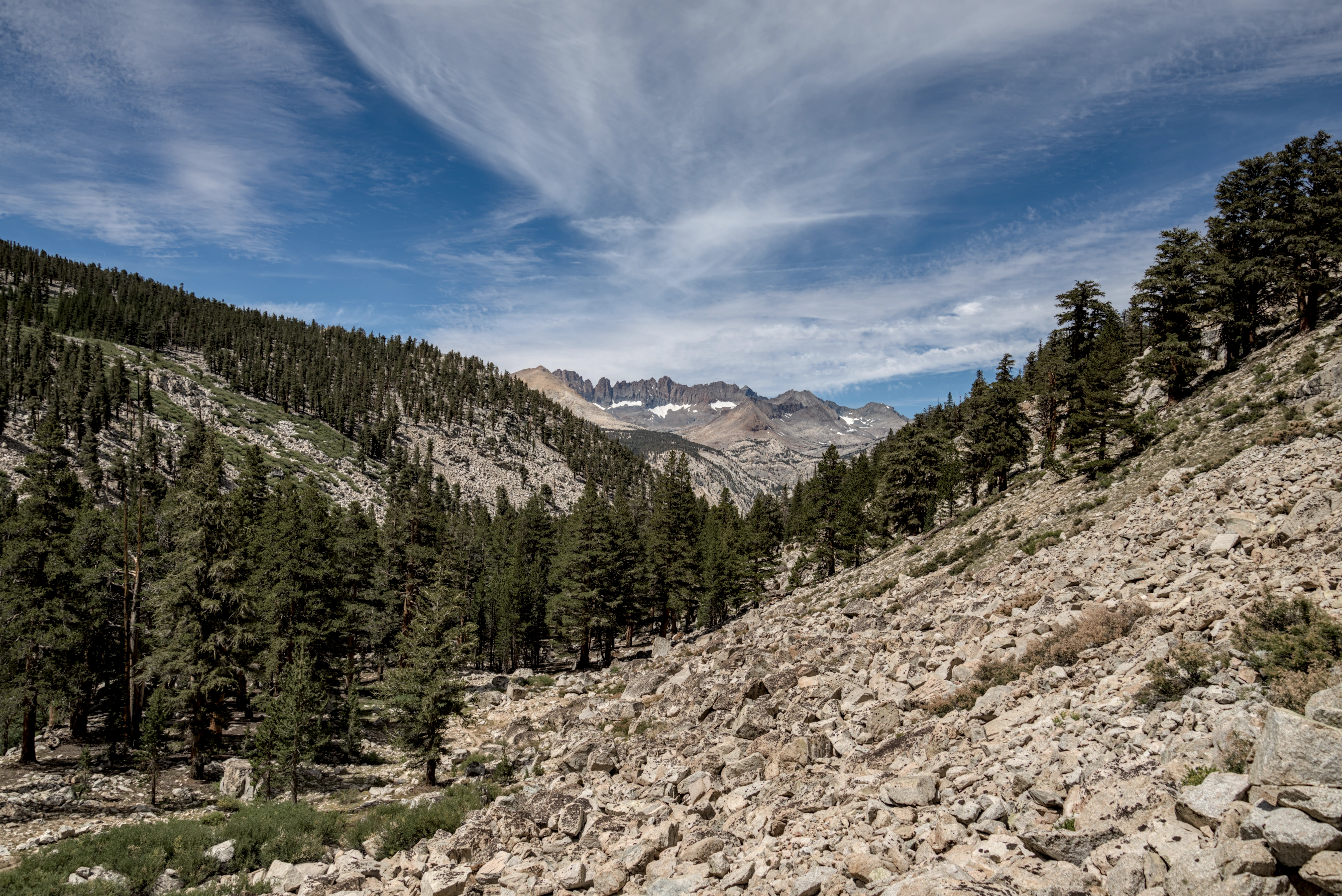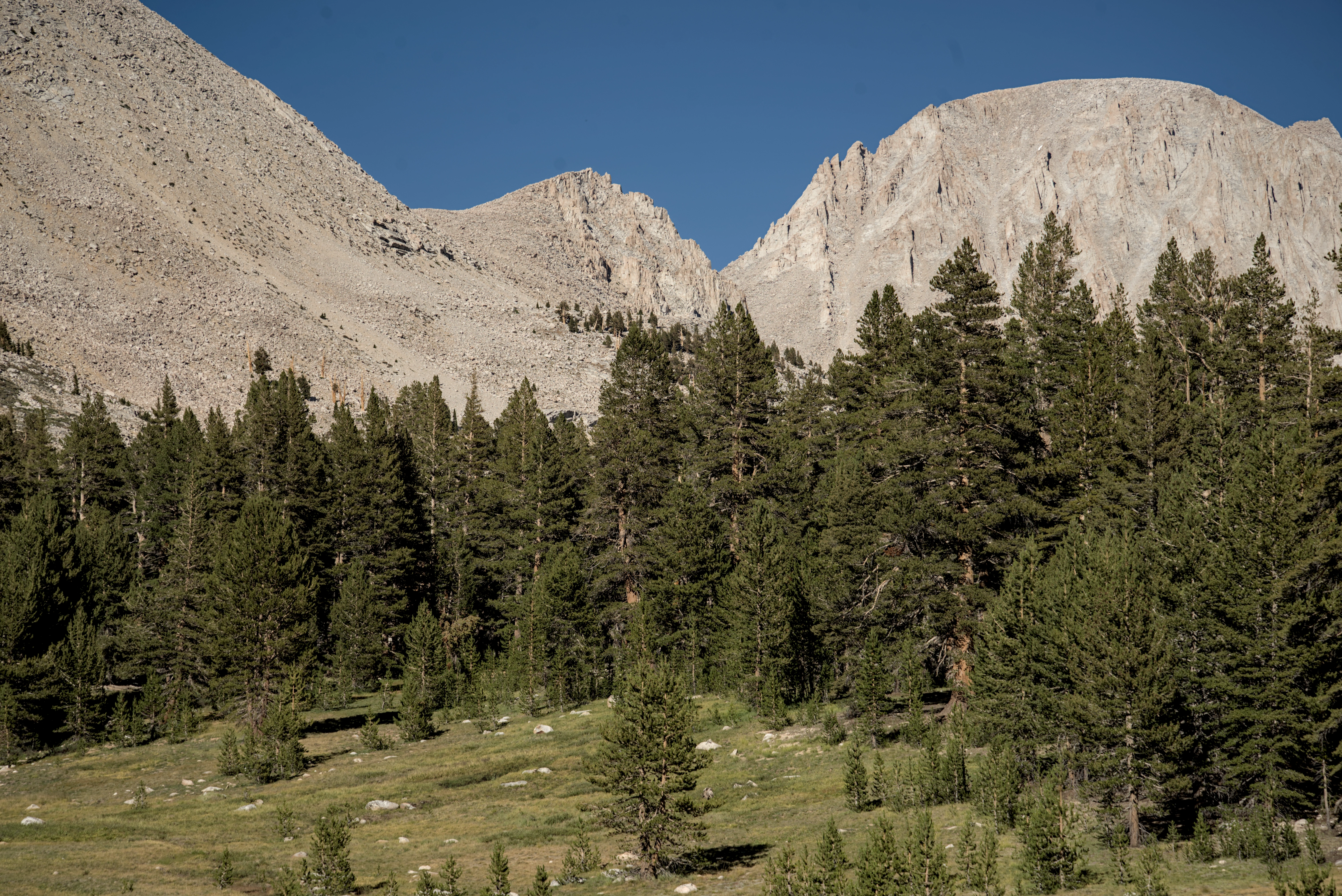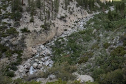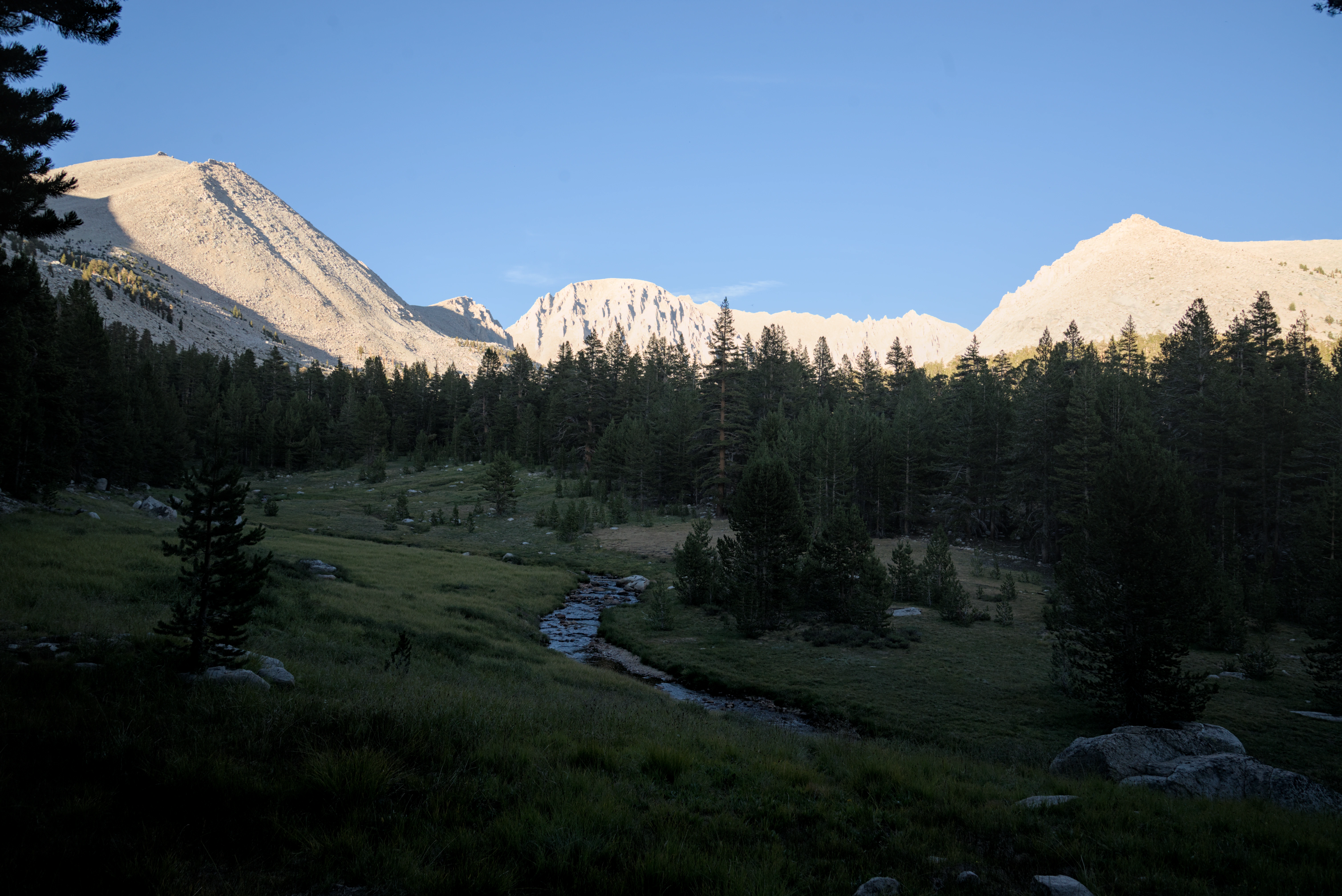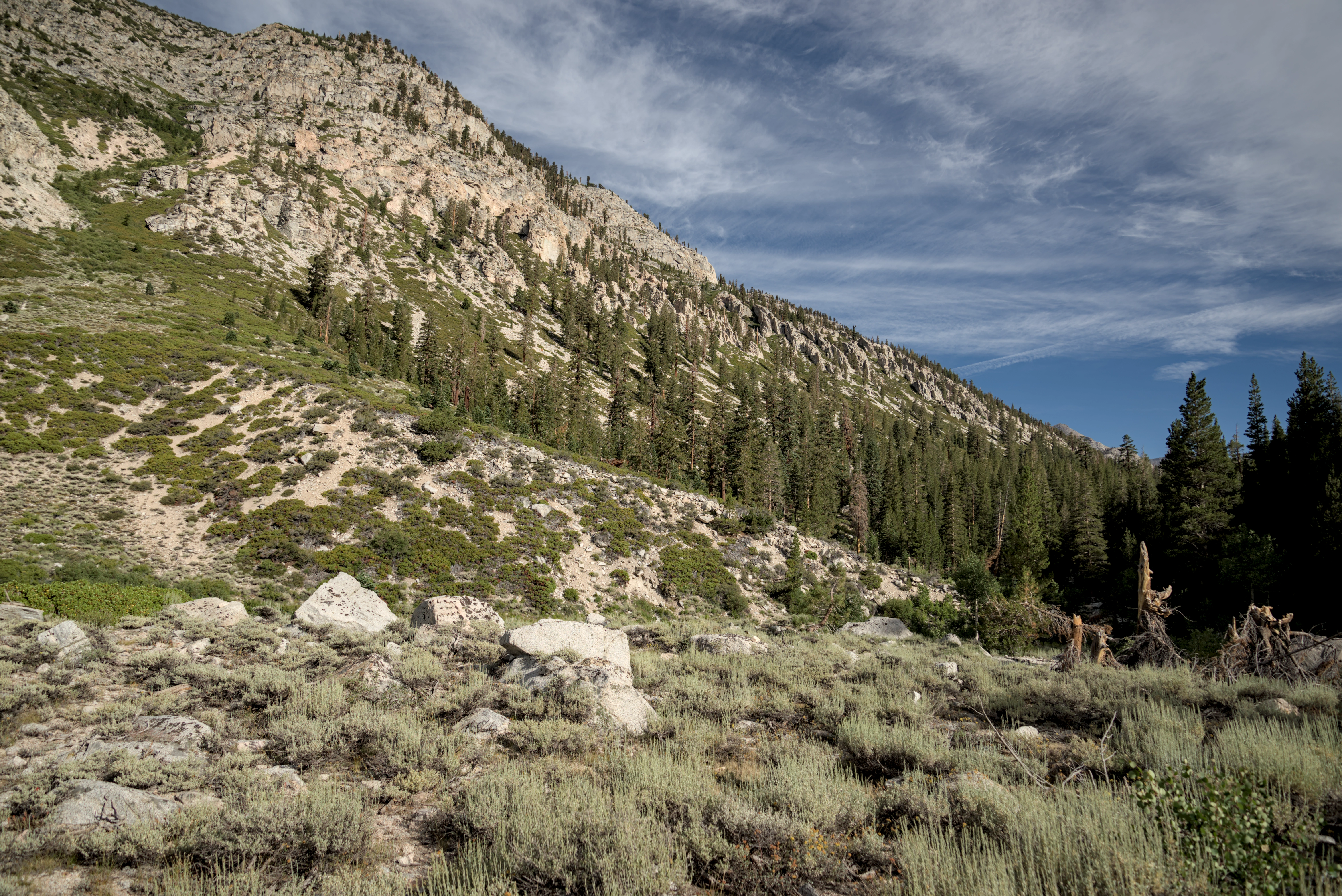 Past where Kern-Kaweah forks off, the valley's starts climbing much more steeply, making the Kern sound like something that needed its photo taken. Unfortunately, post-processing these photos is where I learned that I don't have the coordination to shoot 1/250' exposure without more stabilization assistance than a monopod, so the photos I ended up with are annoyingly blurry.