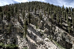 A look back at the confluence of the Kern and the Kern-Kaweah. Mt. Kaweah is hidden behind the point poking up above the plateau.