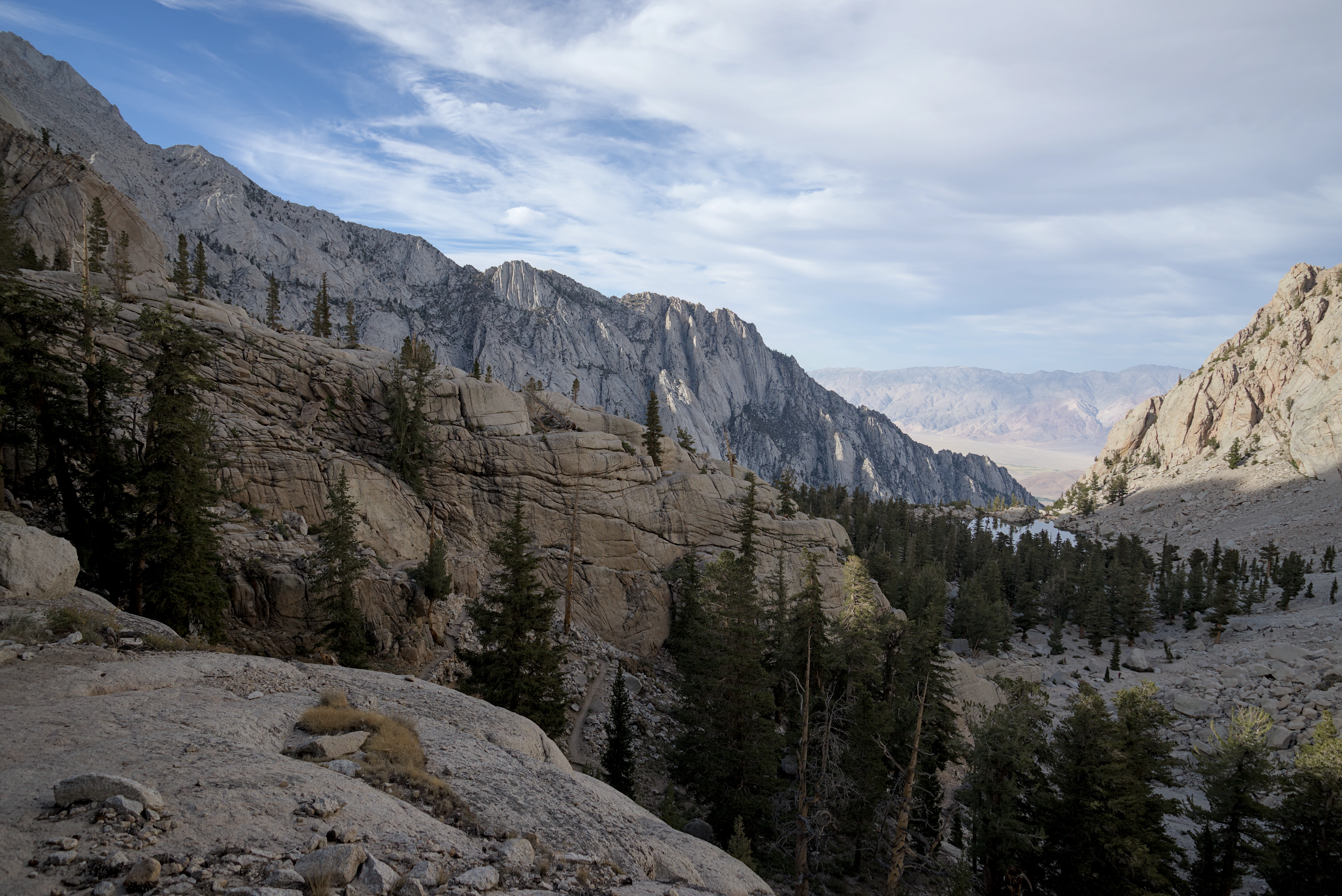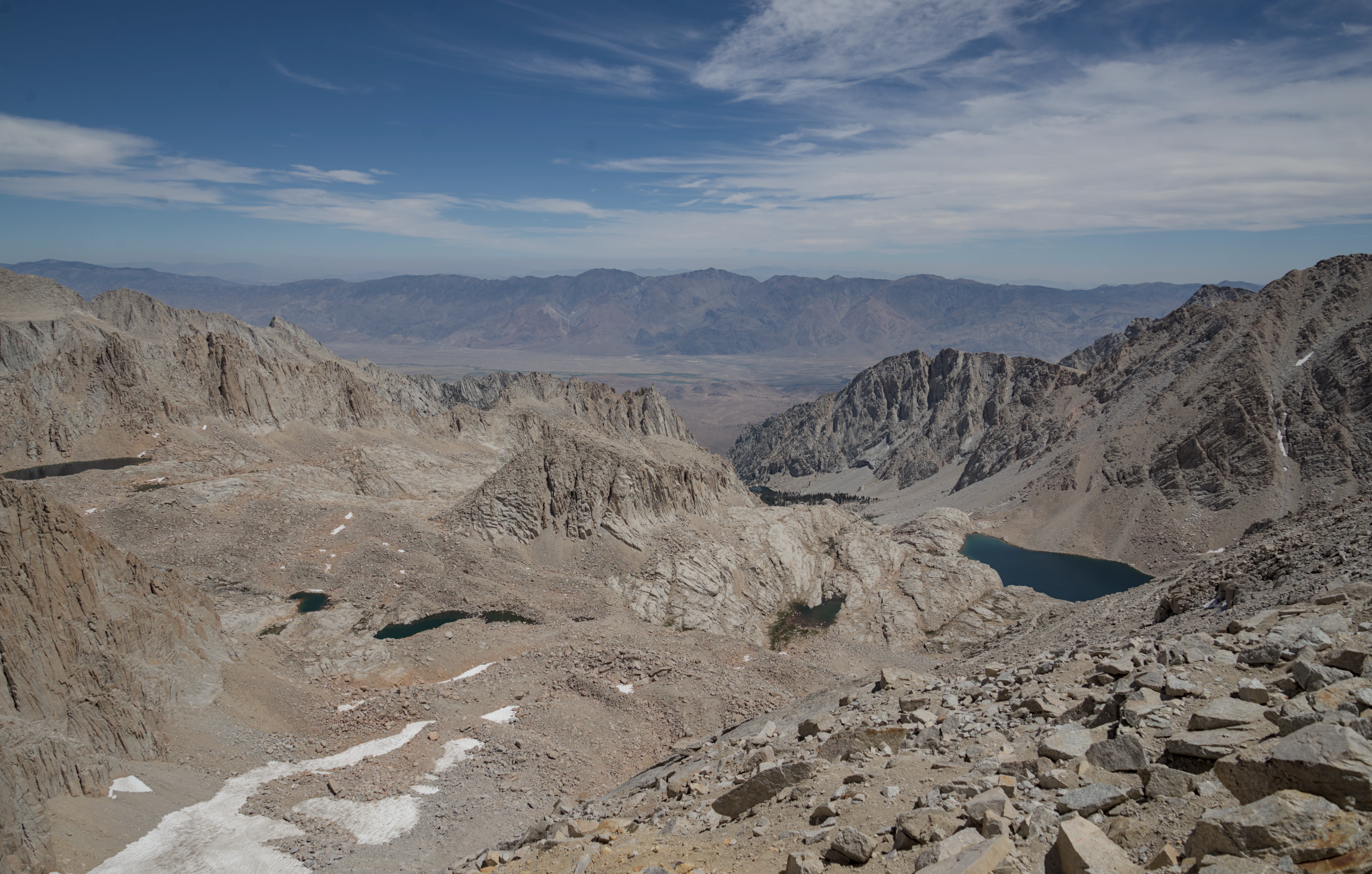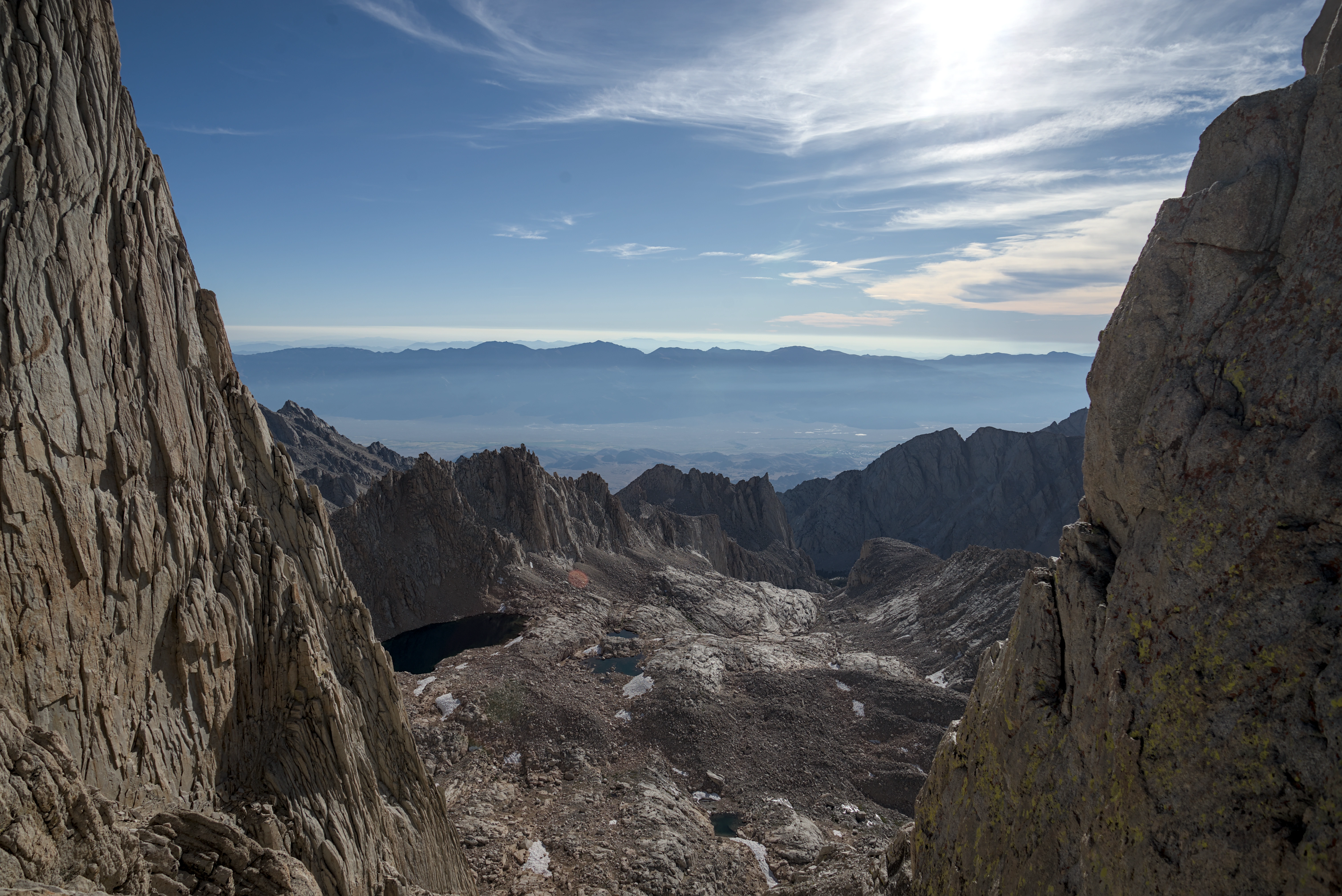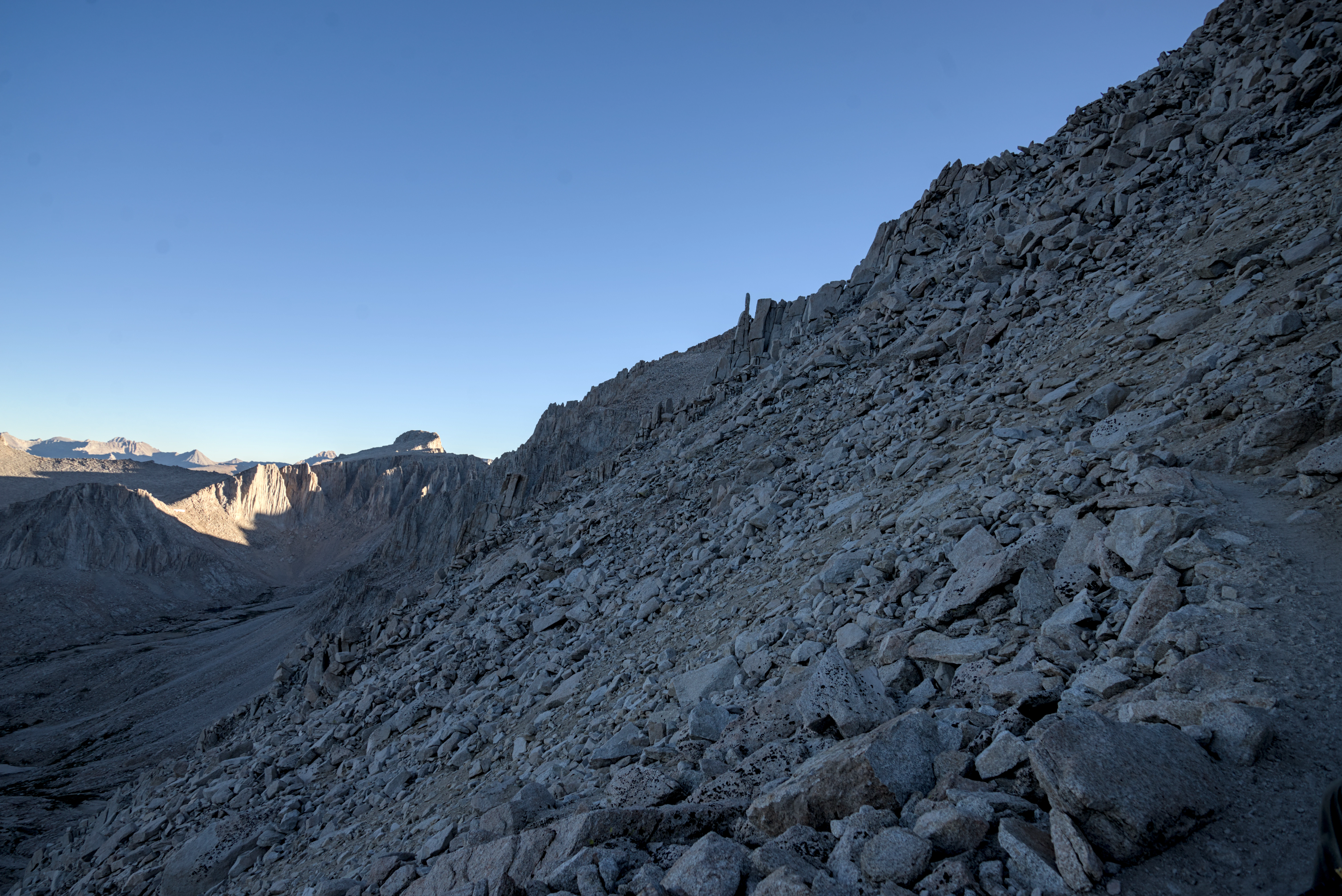 Whitney is the peak in the background. You can see the trail there running along the top of the cliffs in the centre.