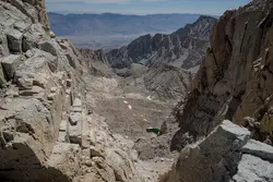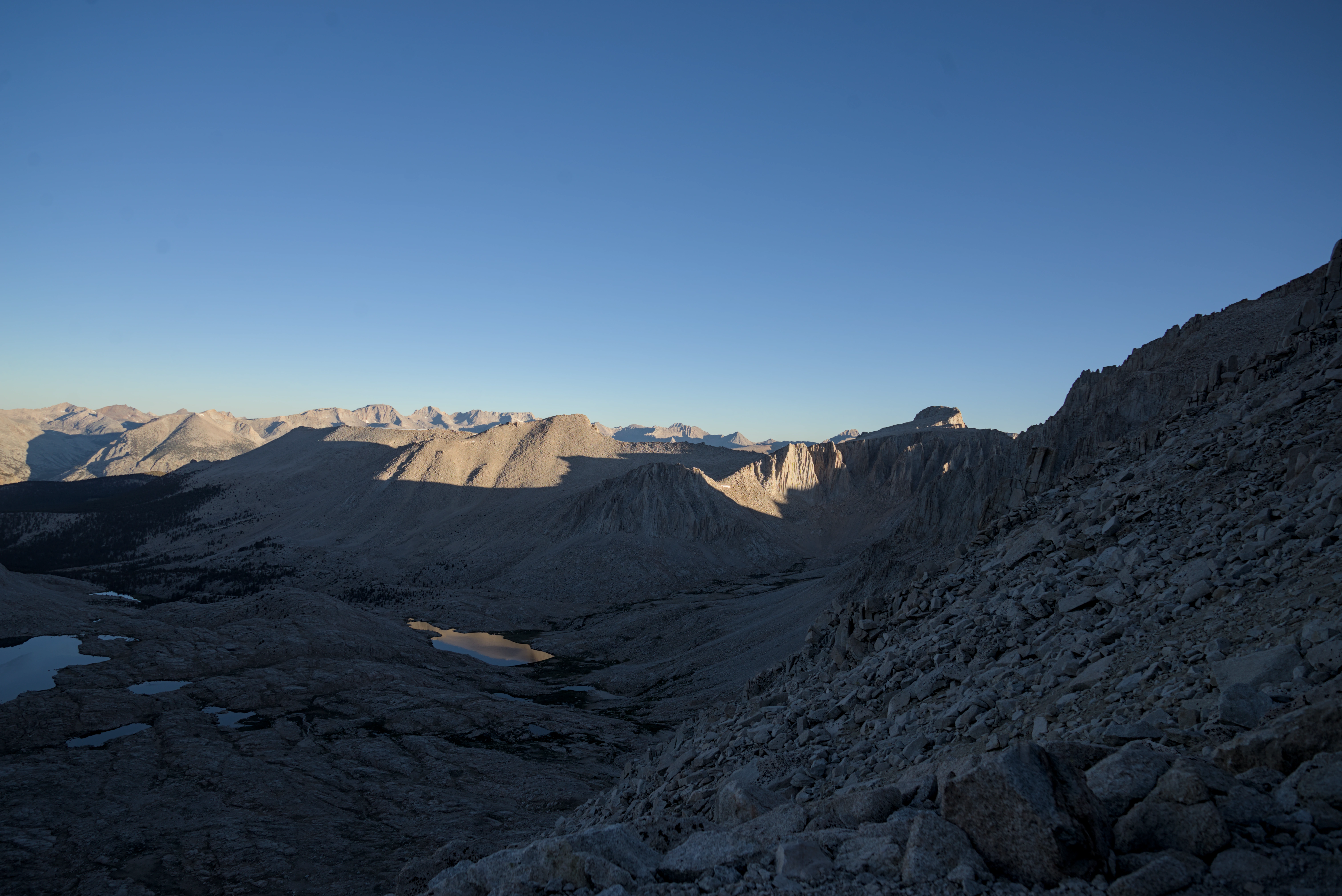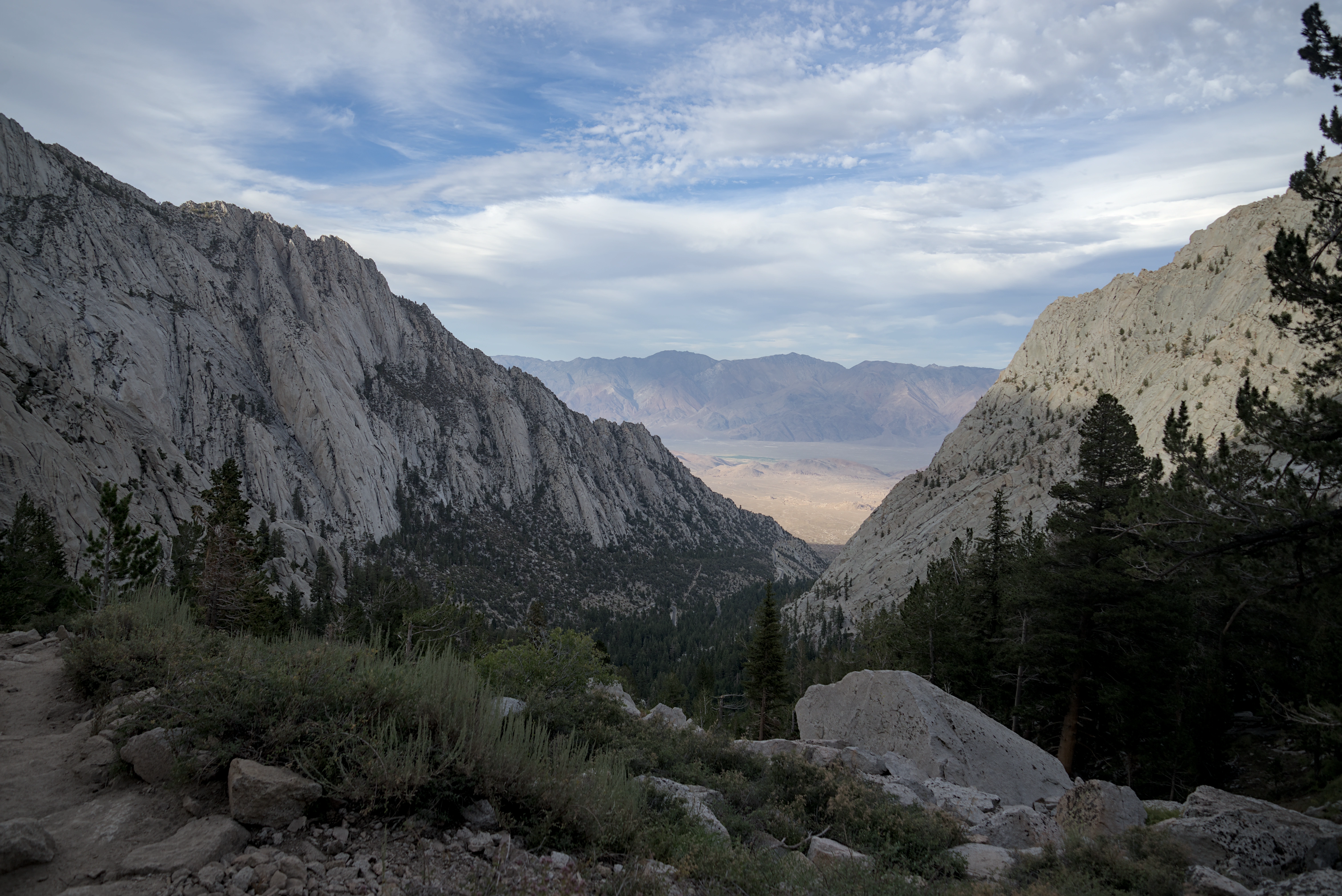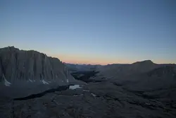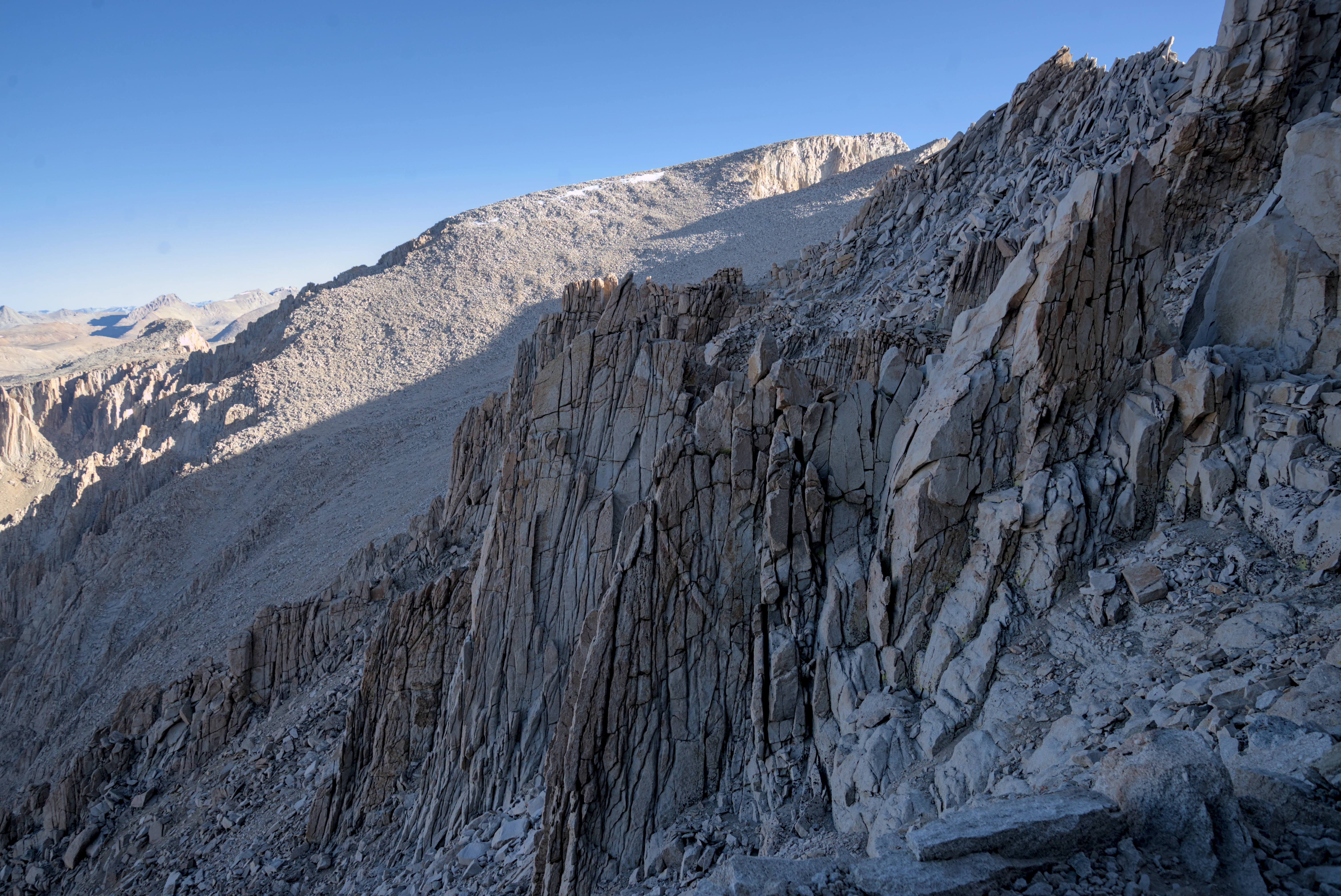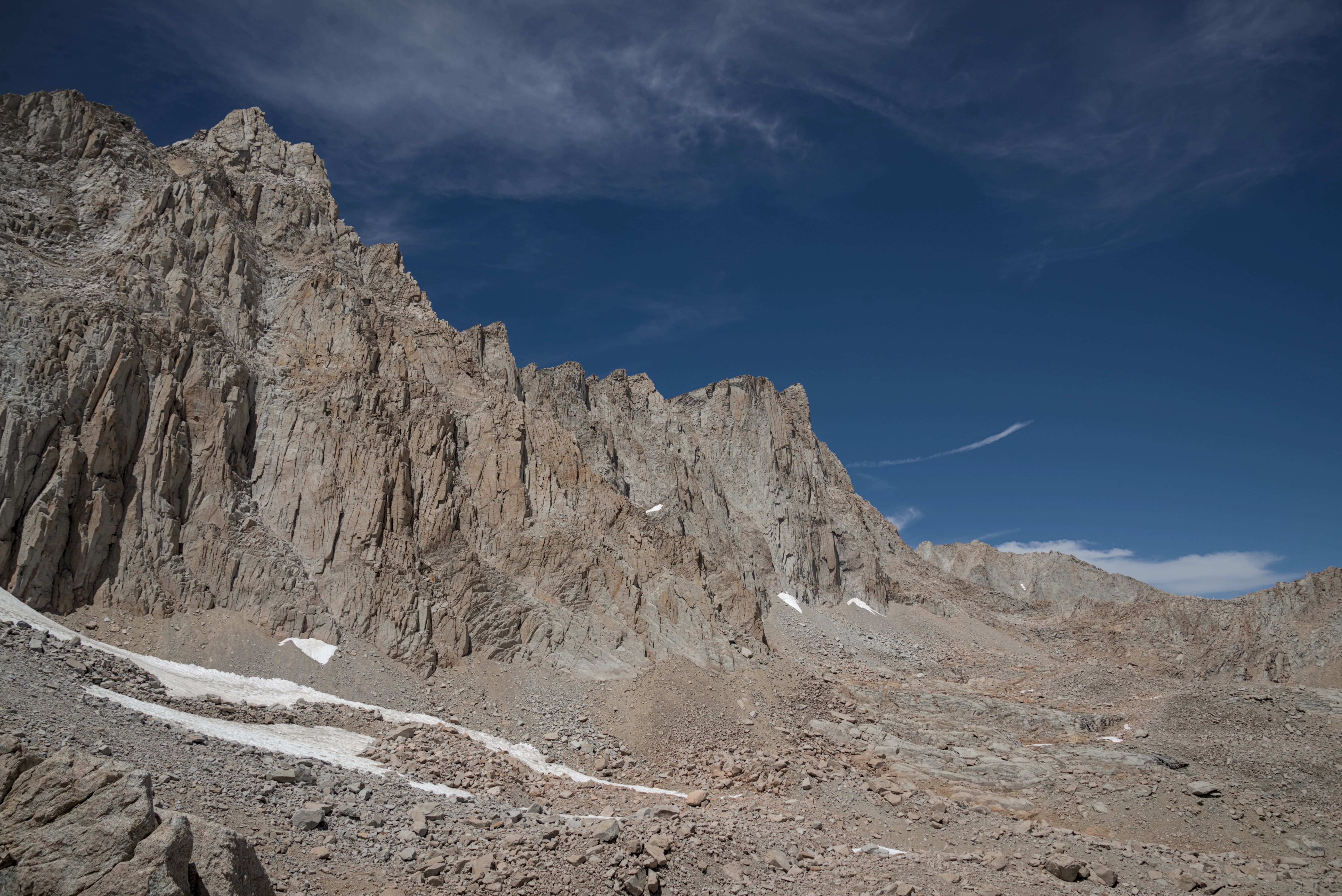 Whitney is the peak in the background. You can see the trail there running along the top of the cliffs in the centre.