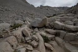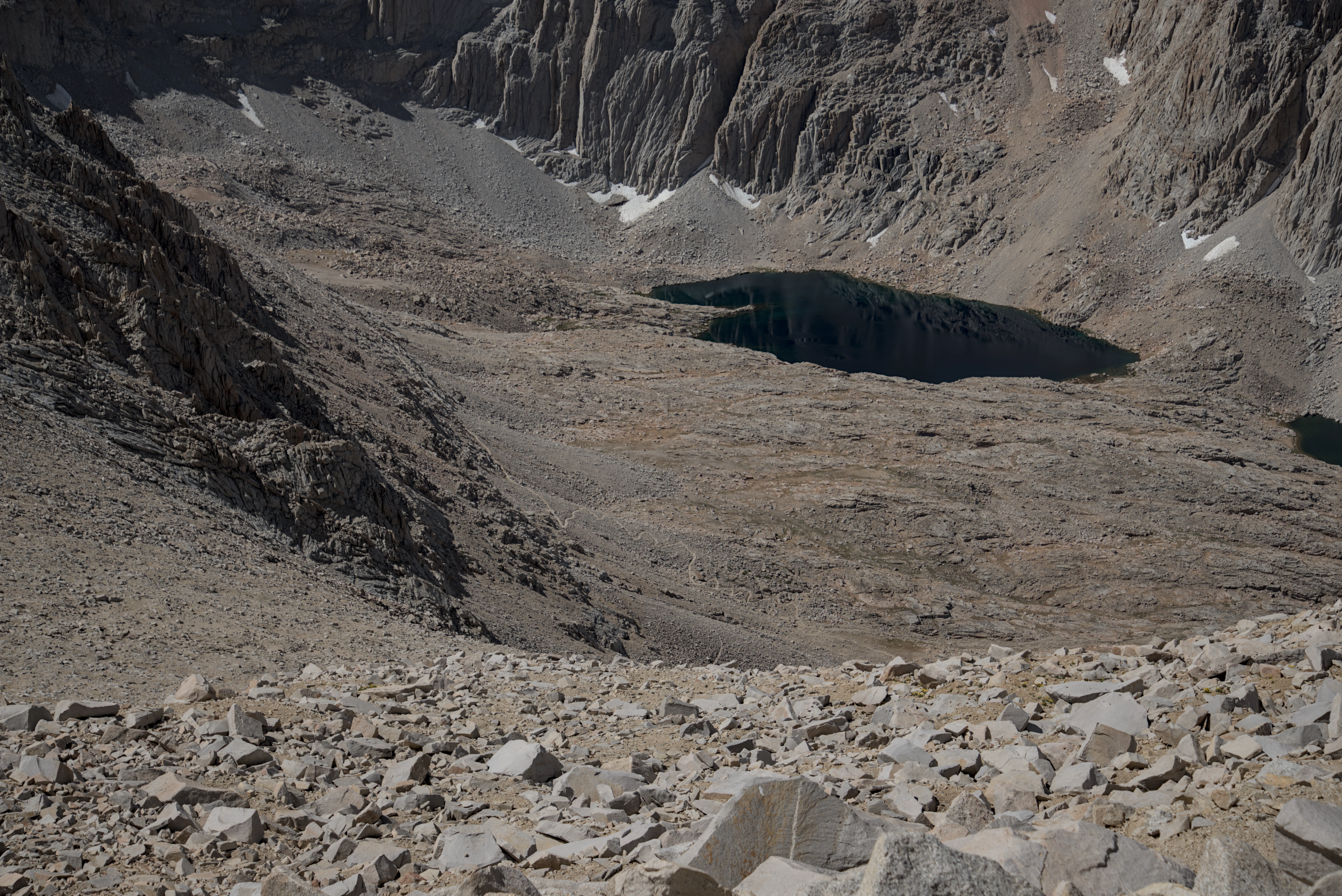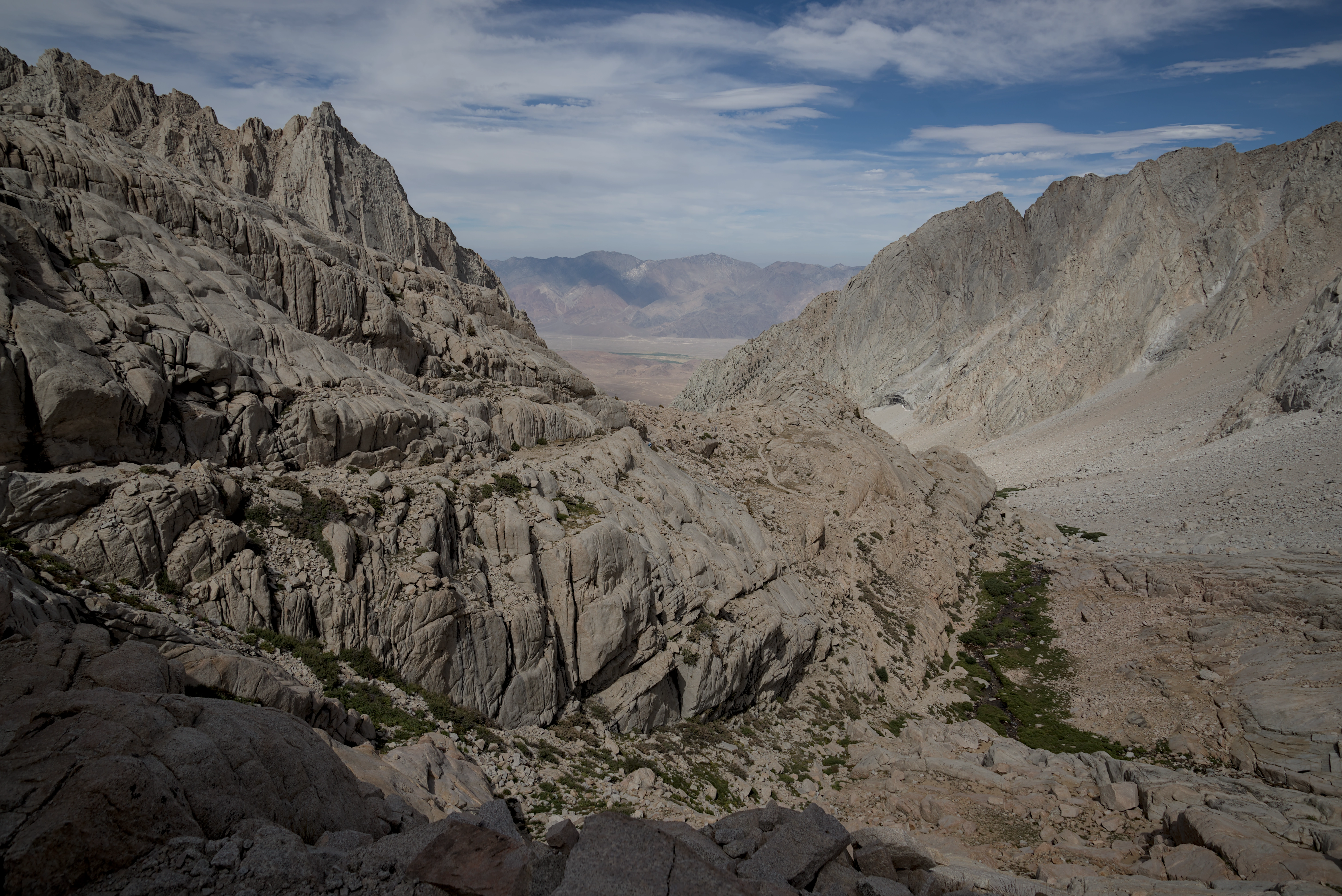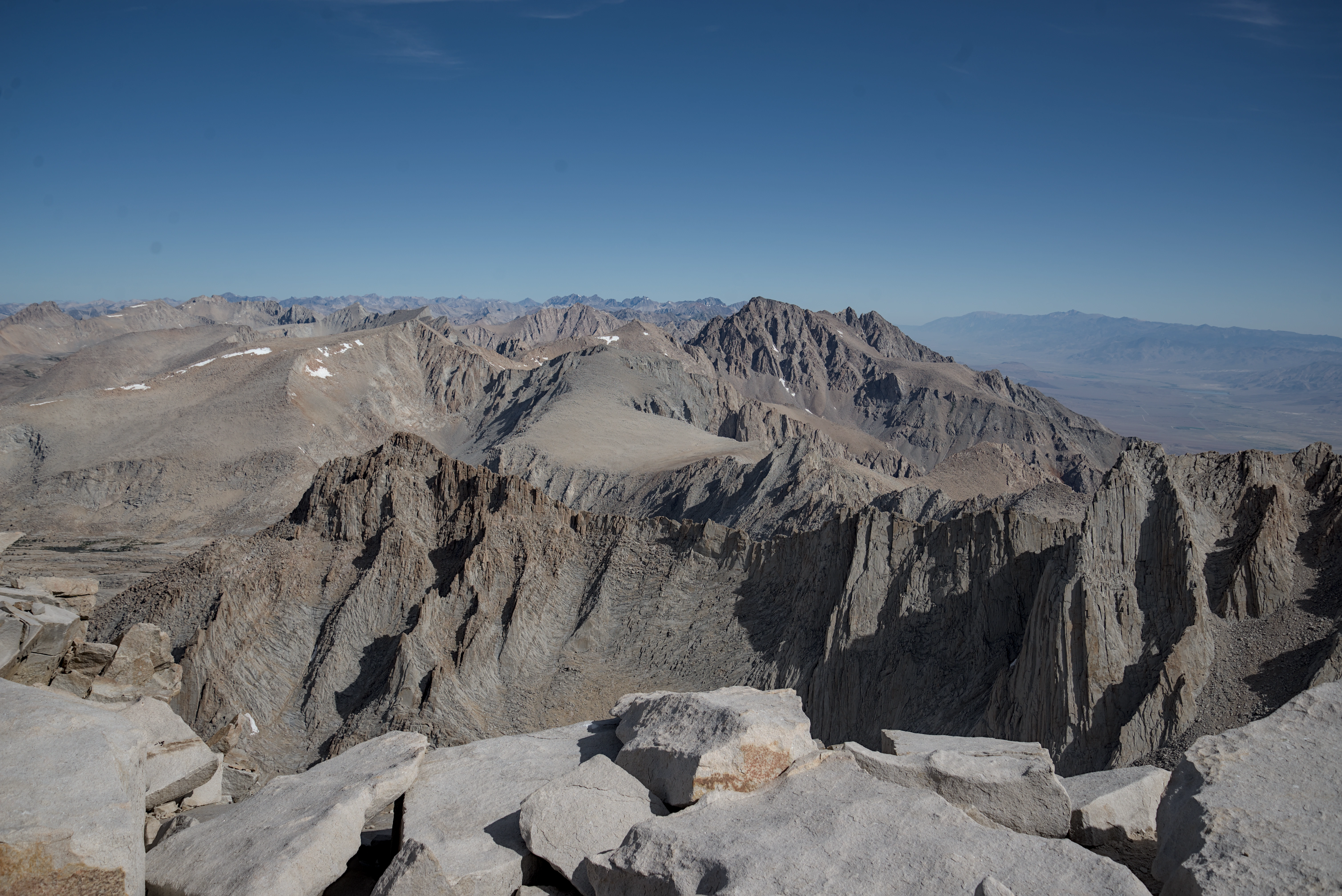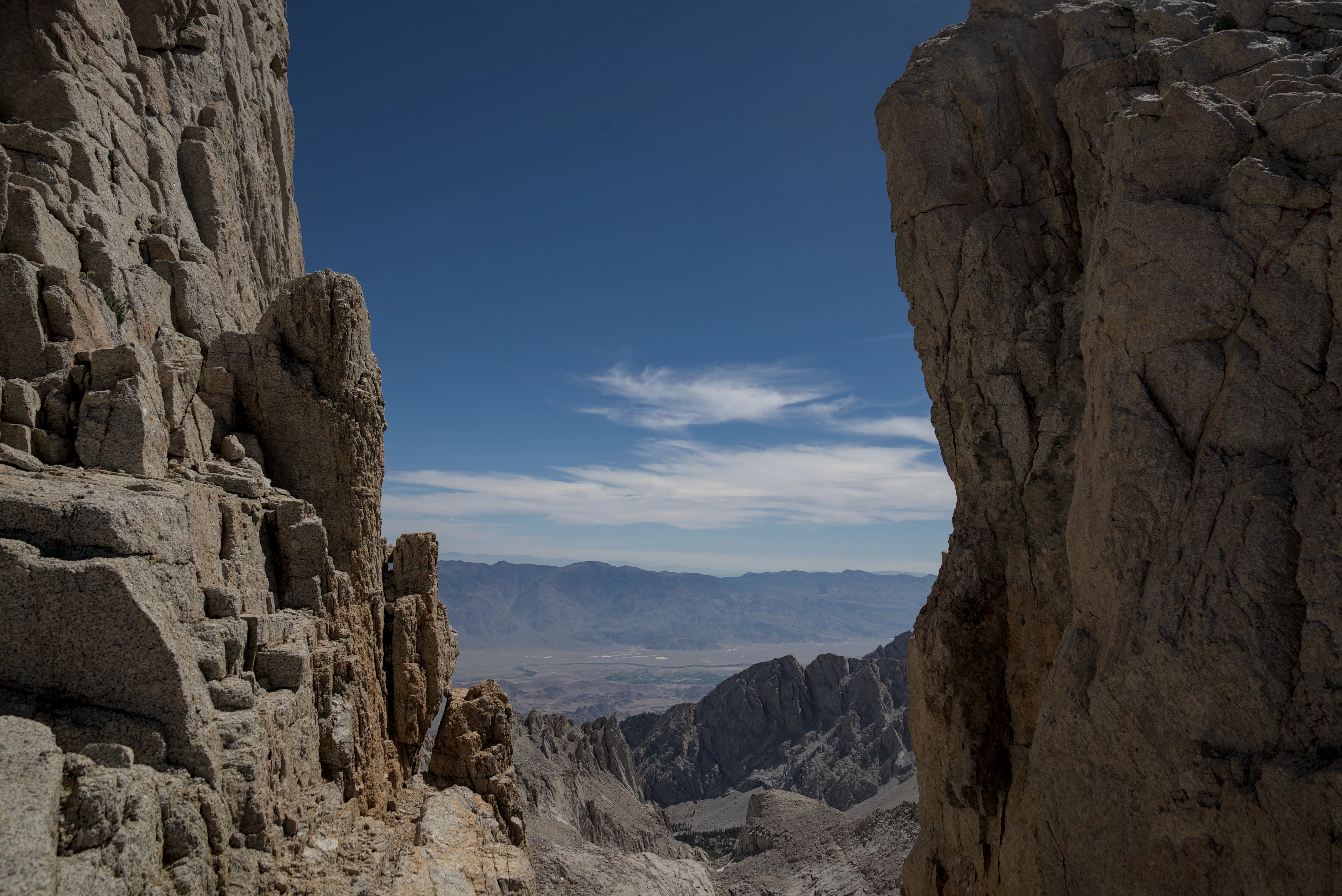 Whitney is the peak in the background. You can see the trail there running along the top of the cliffs in the centre.