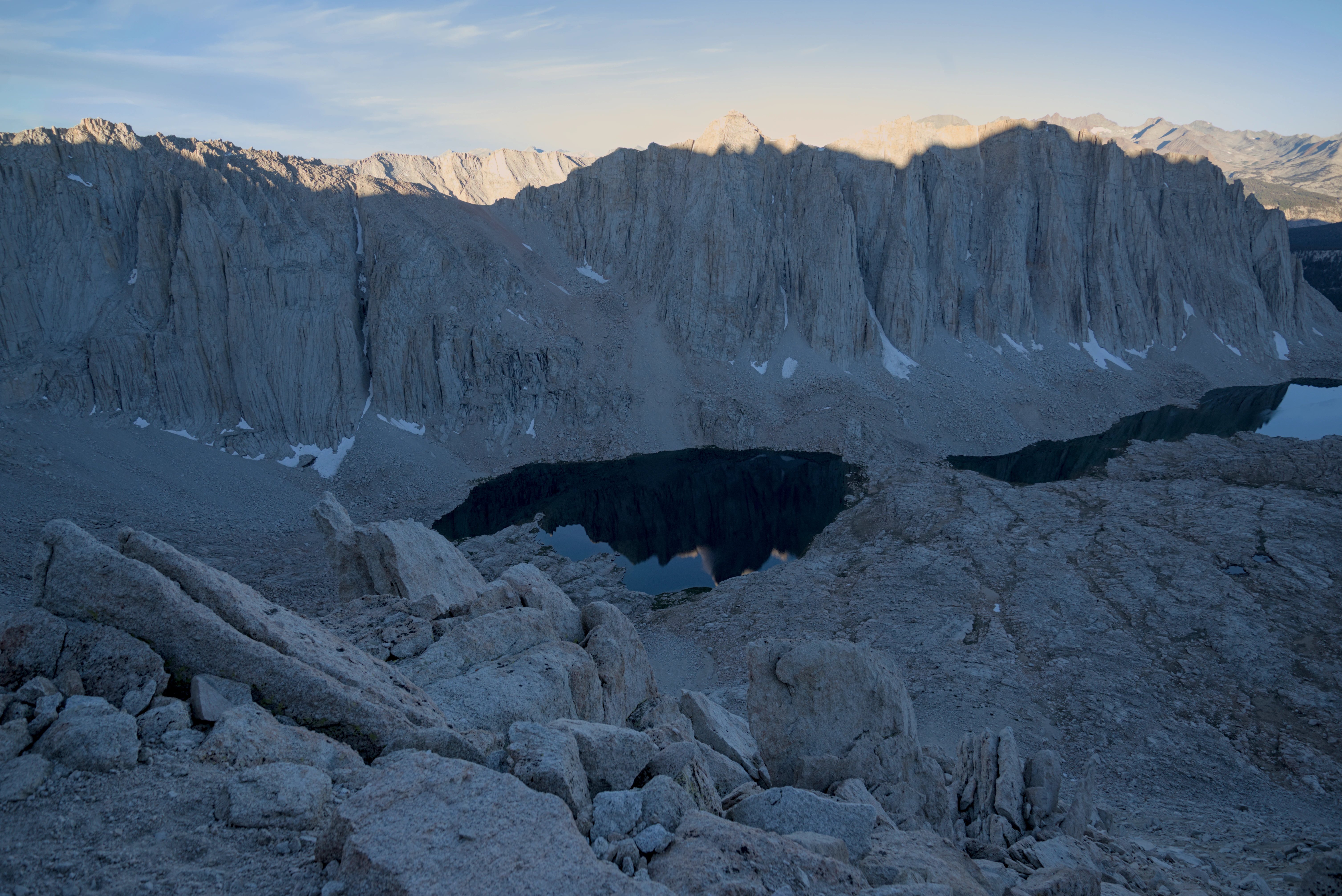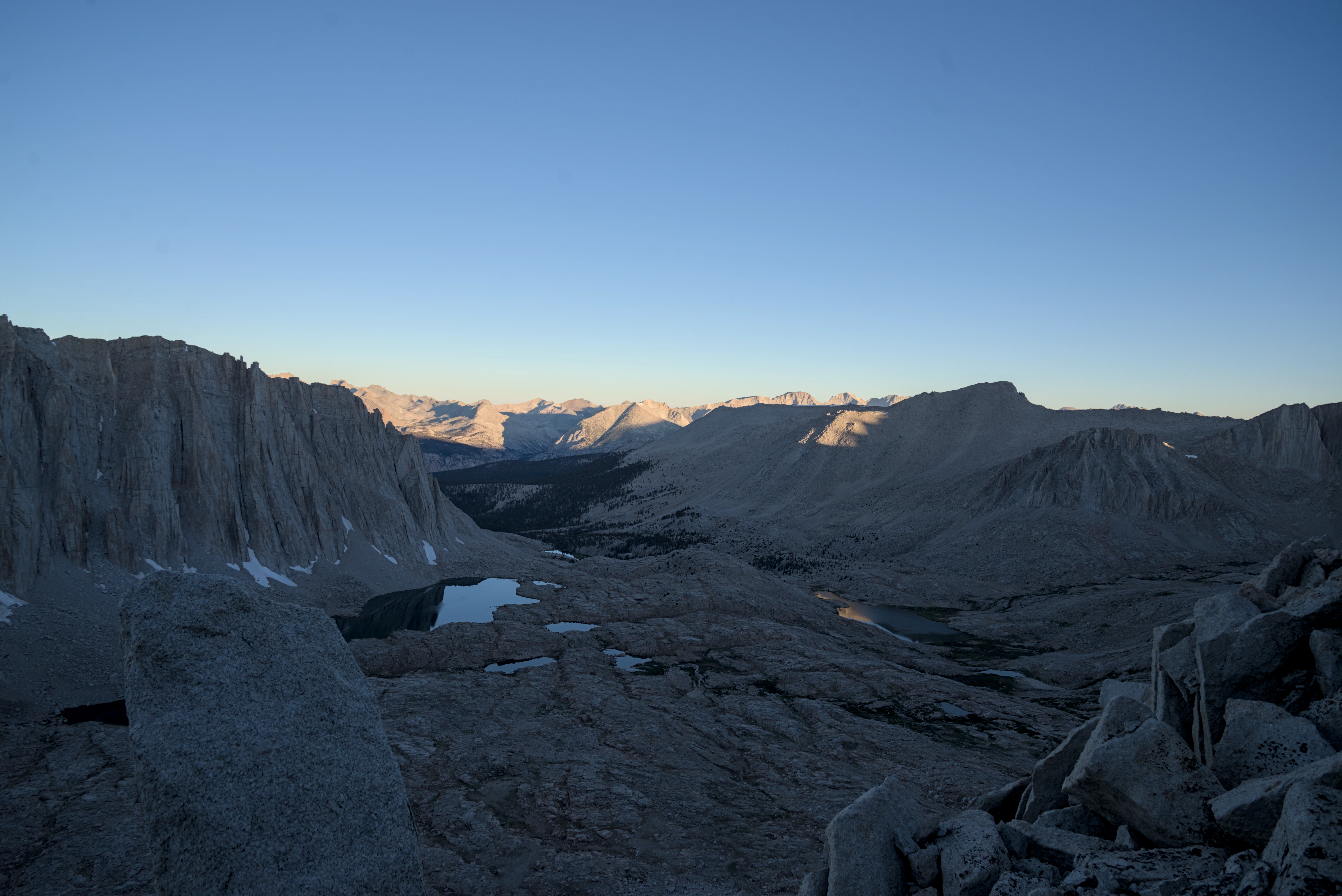 We started hiking early, so by the time there was enough light to have any hope of a photo, we'd already gained enough elevation that both Hamilton lakes were already visible.