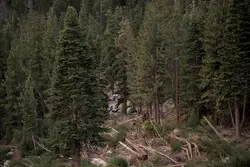 In an earlier caption, I said the rocky outcropping where I dropped off Mt. Young's ridgeline acted as a false summit earlier in the day. Based on this photo, I think the false summit would actually be farther left where the ridge first flattens out. That also means that from the trail, about 40% of the elevation was hiding behind that false summit.
